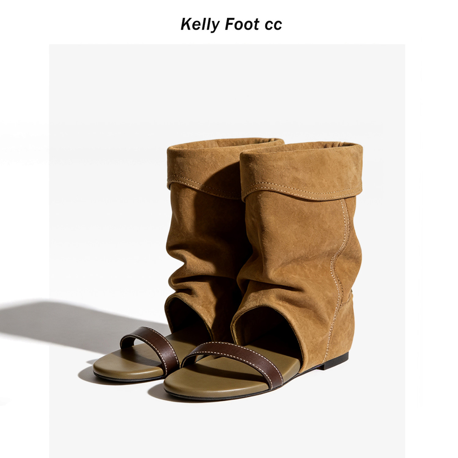 Retro casual open-toe stacked boots women's new spring and summer nomadic style with flat soles and increased height pleated cool boots