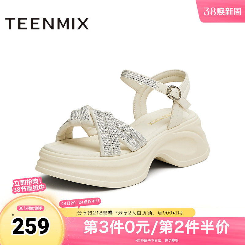 Tianmeiyi's 2025 new shopping mall is the same fashionable rhinestone platform women's one-line strap sandals BK941BL5