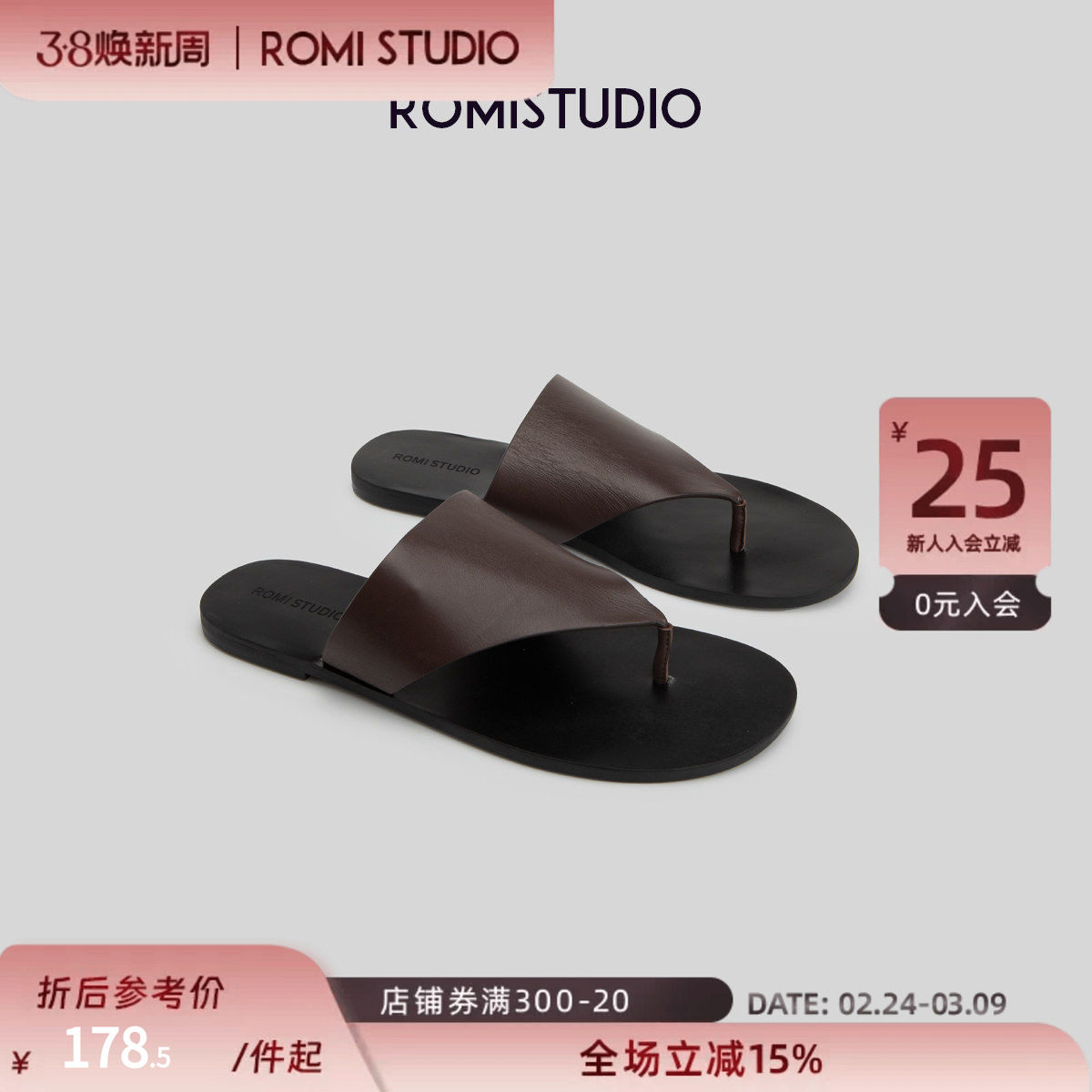 ROMI STUDIO "Simple Casual" Triangle Herringbone Flat Resort Slippers S3658