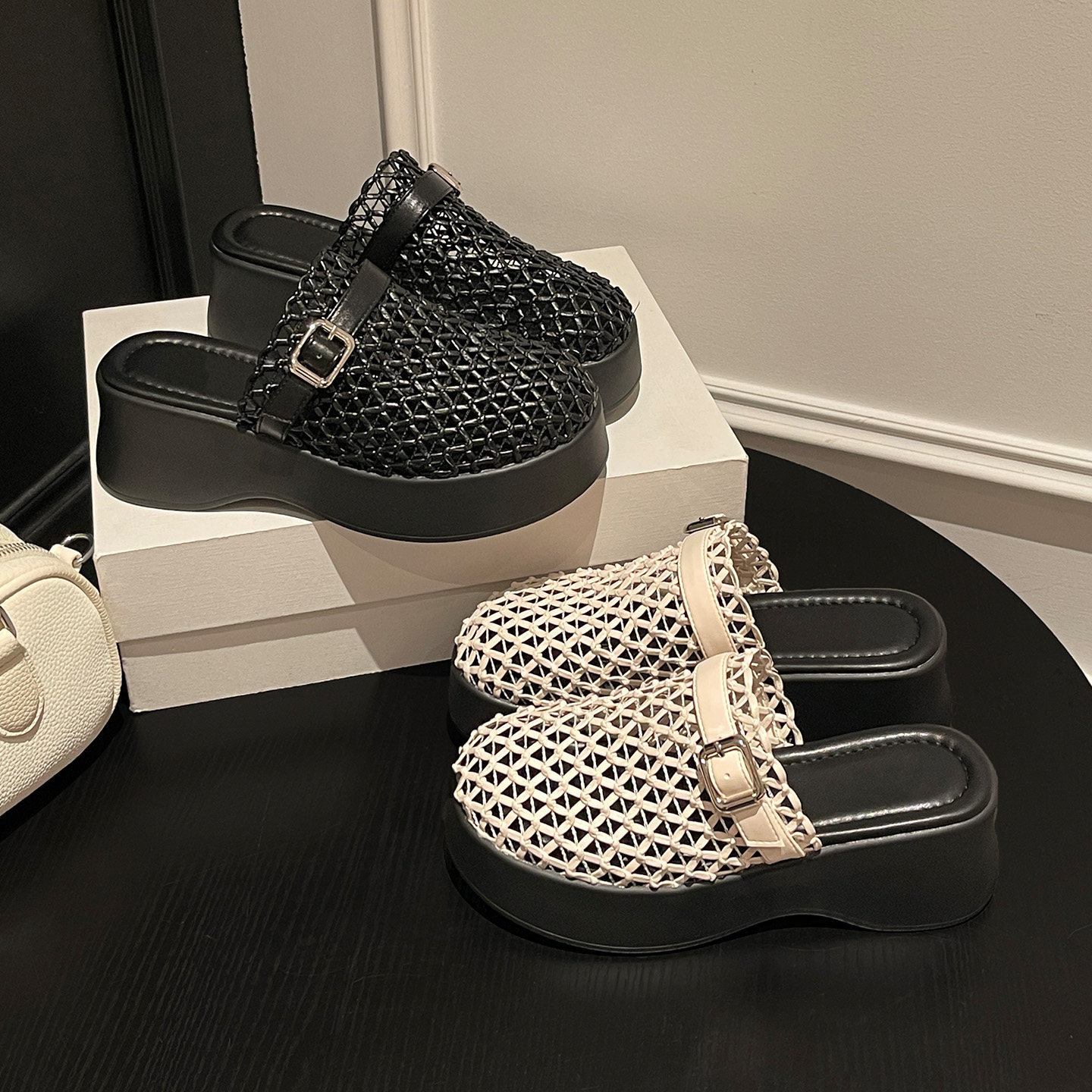Italy SANLI~ small man heightened toe half slippers women's new style of openwork mesh platform sandals