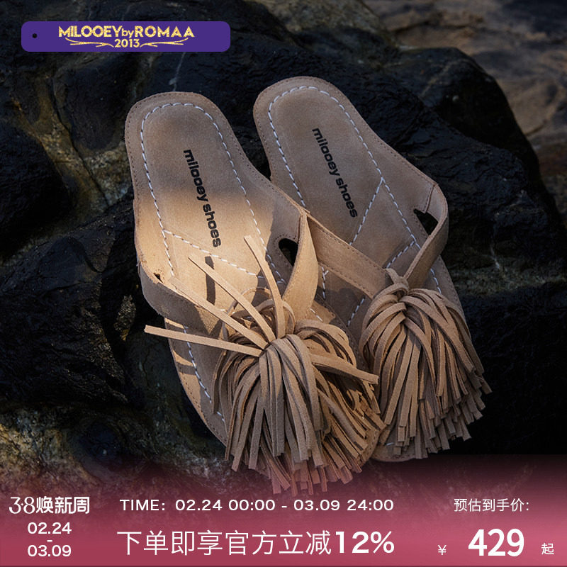 Lost Elk [New Chinese Fringe Slippers] Purple Label Series Casual Flat Slippers Wear Slippers Outside in Spring and Summer