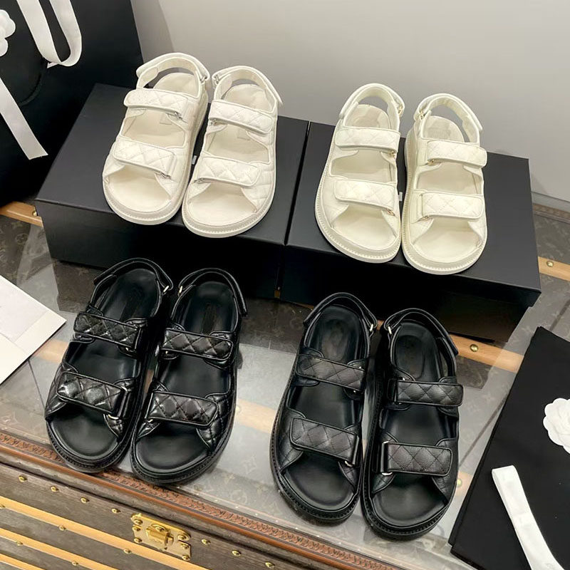 Little fragrance wind velcro beach sandals women's 2025 summer new leather flat Roman shoes thick-soled casual shoes to wear outside