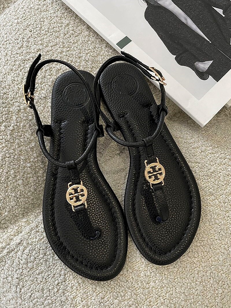 2025 summer new buckle strap clip-toe sandals for women wearing flat and versatile vintage Roman herringbone sandals