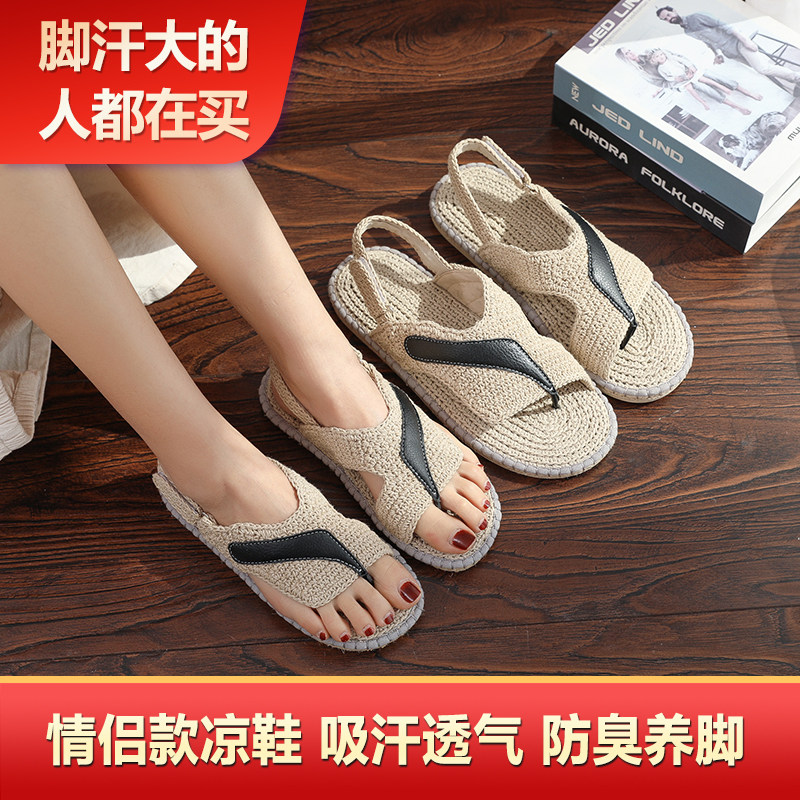 Yaluren 2025 Summer New Couple Clip-toe Linen Sandals Straw Shoes Breathable and Sweat-Absorbing Handmade Linen Shoes