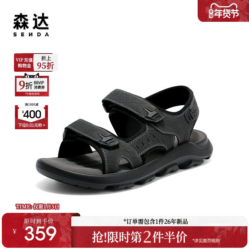 Senda Casual Sandals Men's 2025 Summer New Shopping Mall Same Comfortable and Lightweight Platform Beach Shoes 1XF01BL5