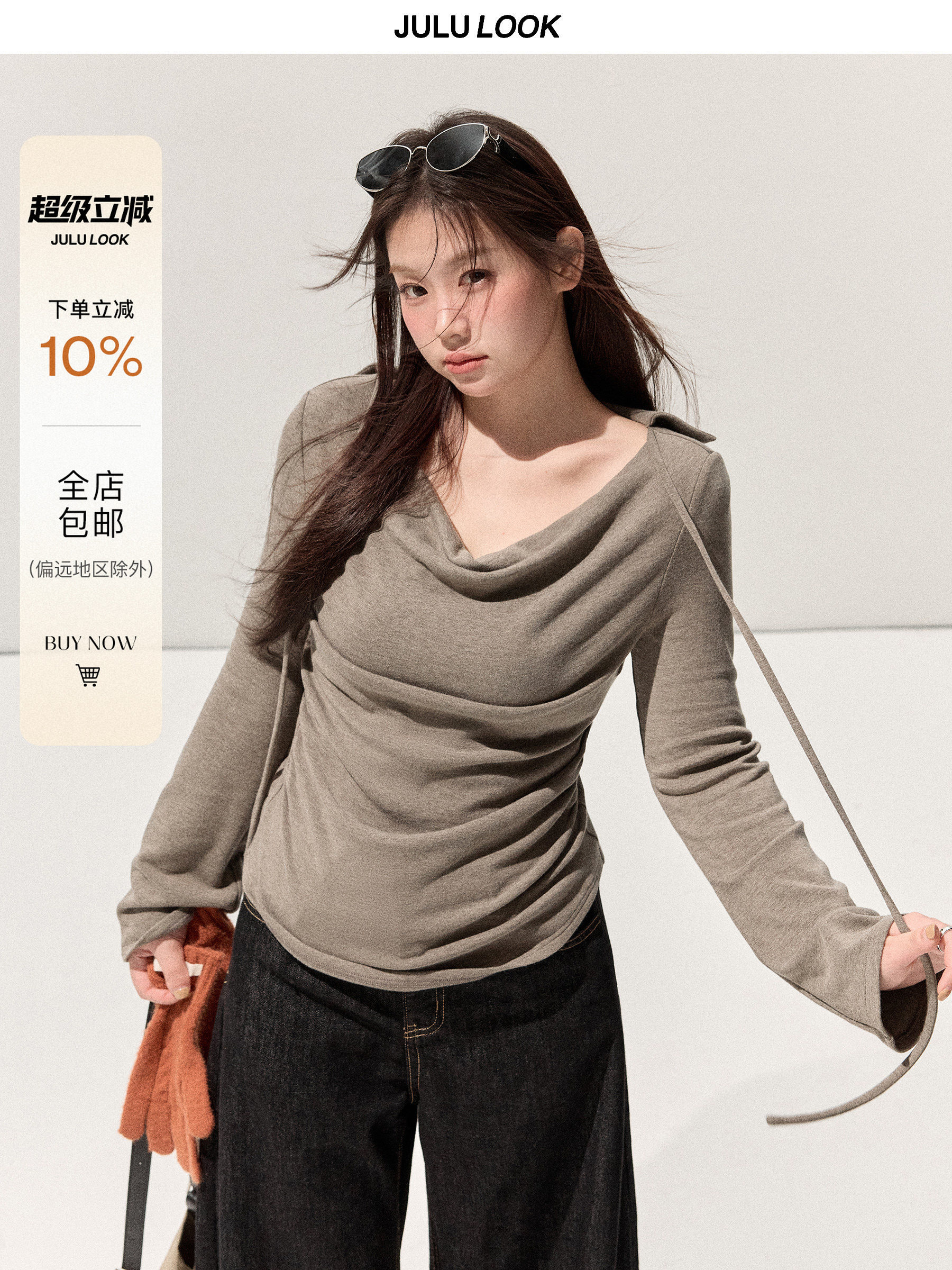Julu Studio's "Lightly Salted and Slightly Sweetened" Long-Sleeve T-Shirt for Plus-Size Women with a Flared Neckline, Waist-Slimming Effect, and Large Size Options