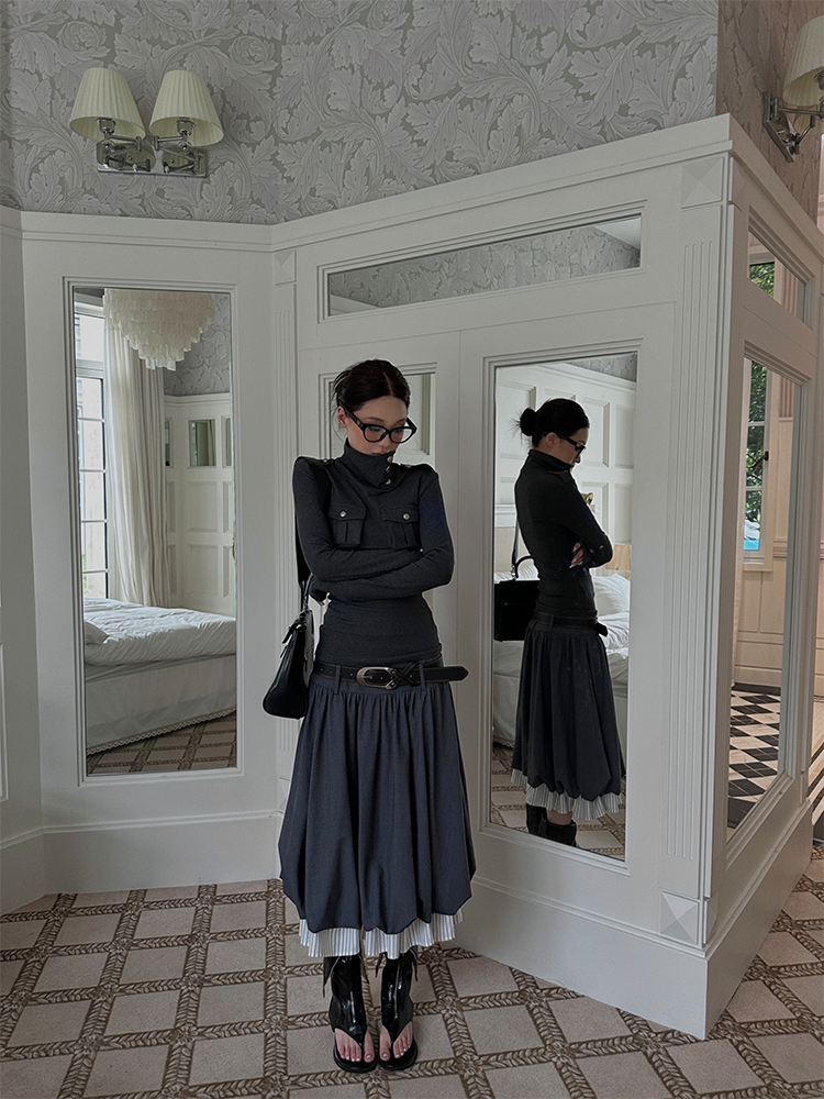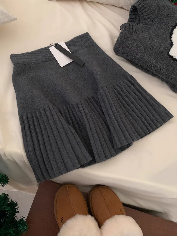 Dark Gray High-End Elastic Waist Versatile A-Line Pleated Skirt for Women, Autumn and Winter High-Waisted Slimming Knitted Half Skirt