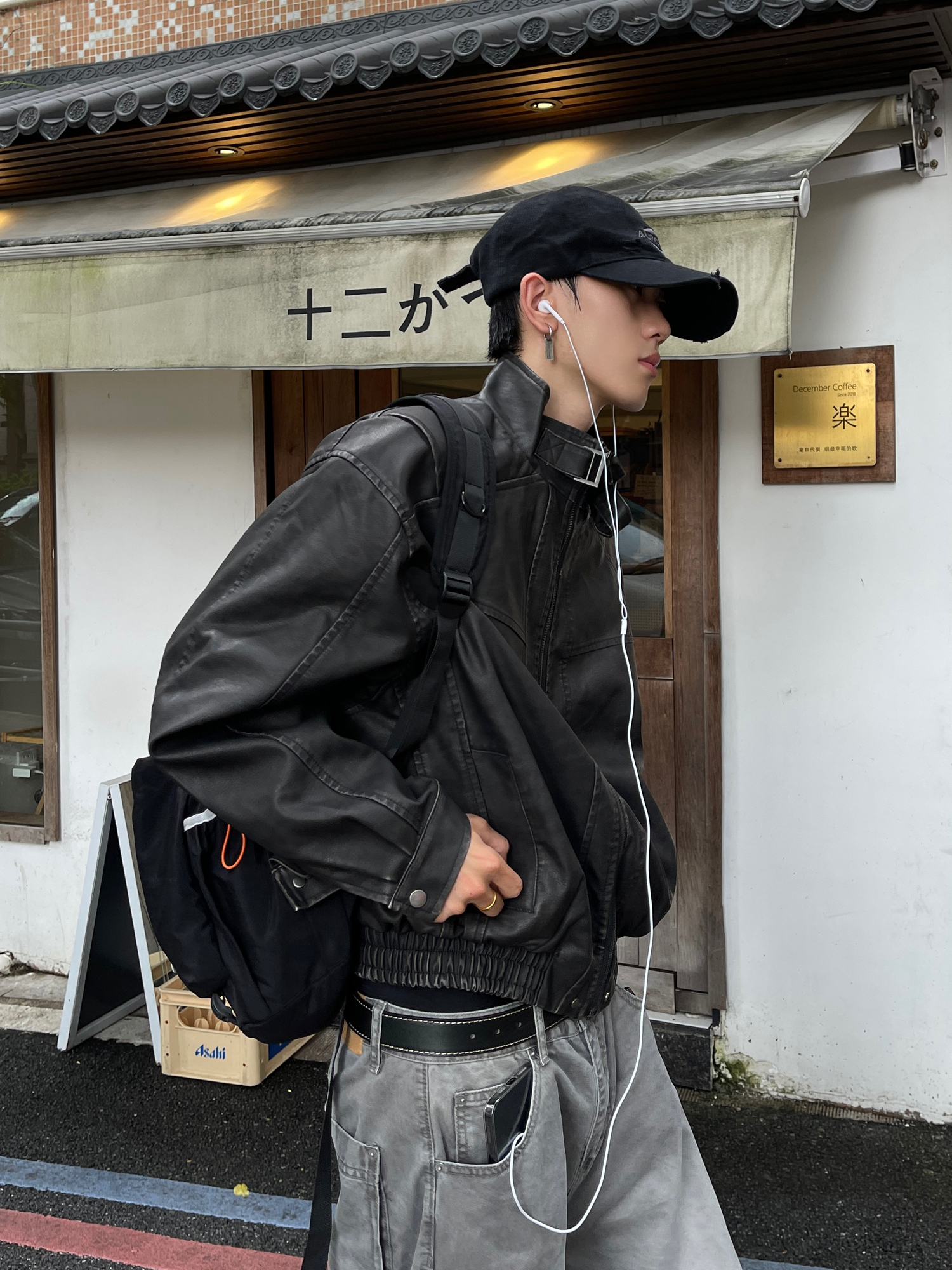 Escape from Guangfu South American Retro Loose-Fitting Deconstructed Tie-Dye Pu Leather Biker Jacket Unisex Trendy Short Wide Coat