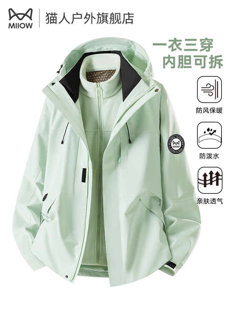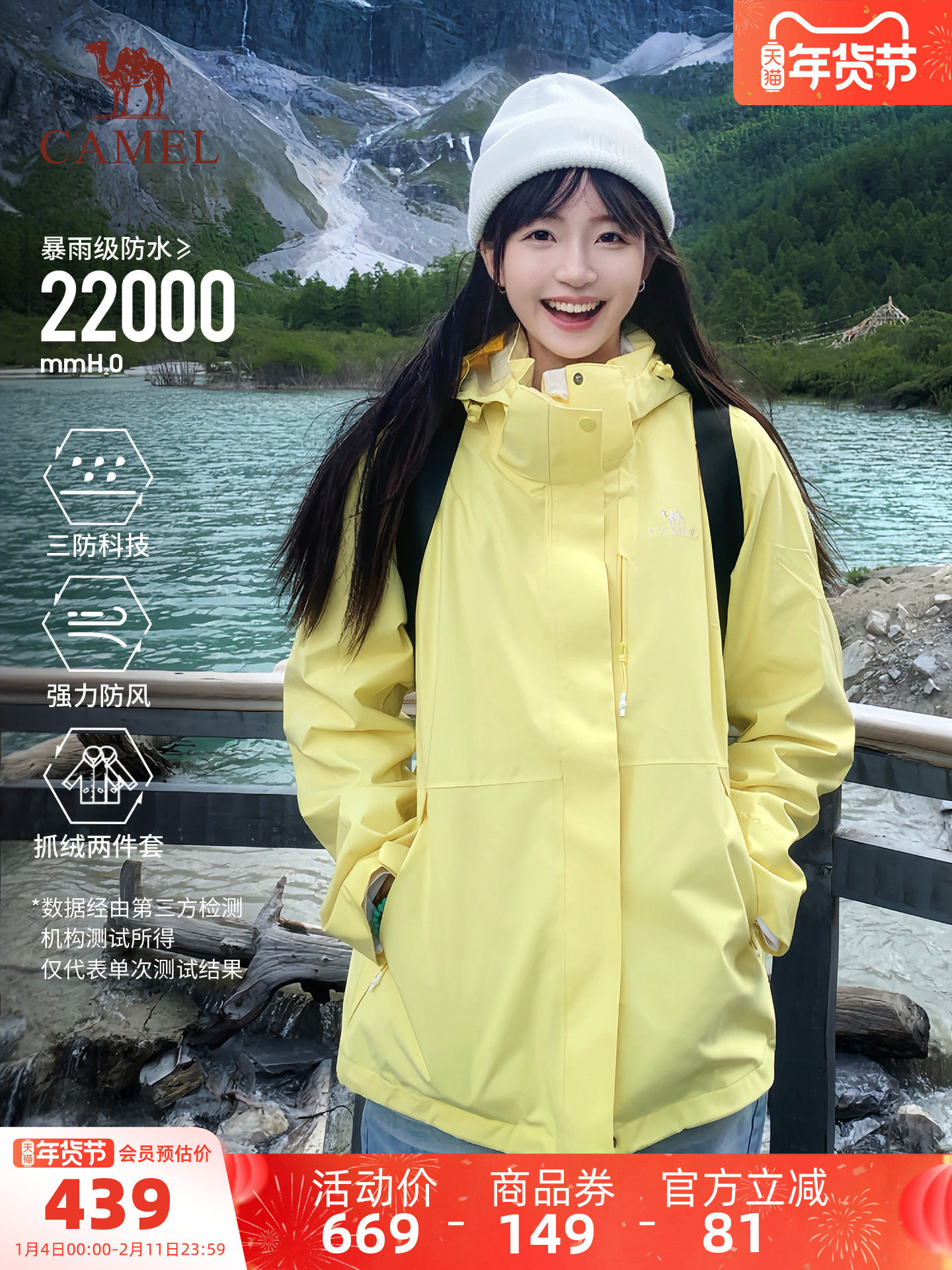 Camel 3514 Series Moonlight Yellow Jacket for Men and Women, Three-In-One Outdoor Waterproof Mountaineering Clothing Travel Jacket