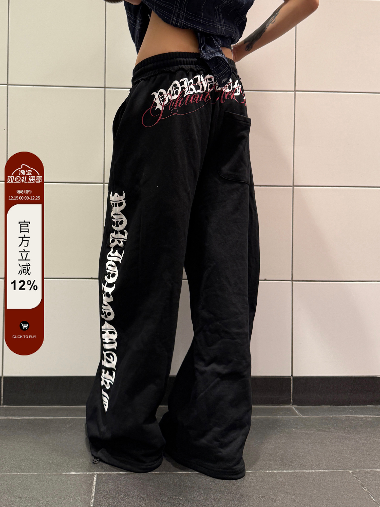 F383 American Retro Letter Print Design Drapey Drawstring Casual Pants Unisex Lazy Versatile Floor-Length Pants ins