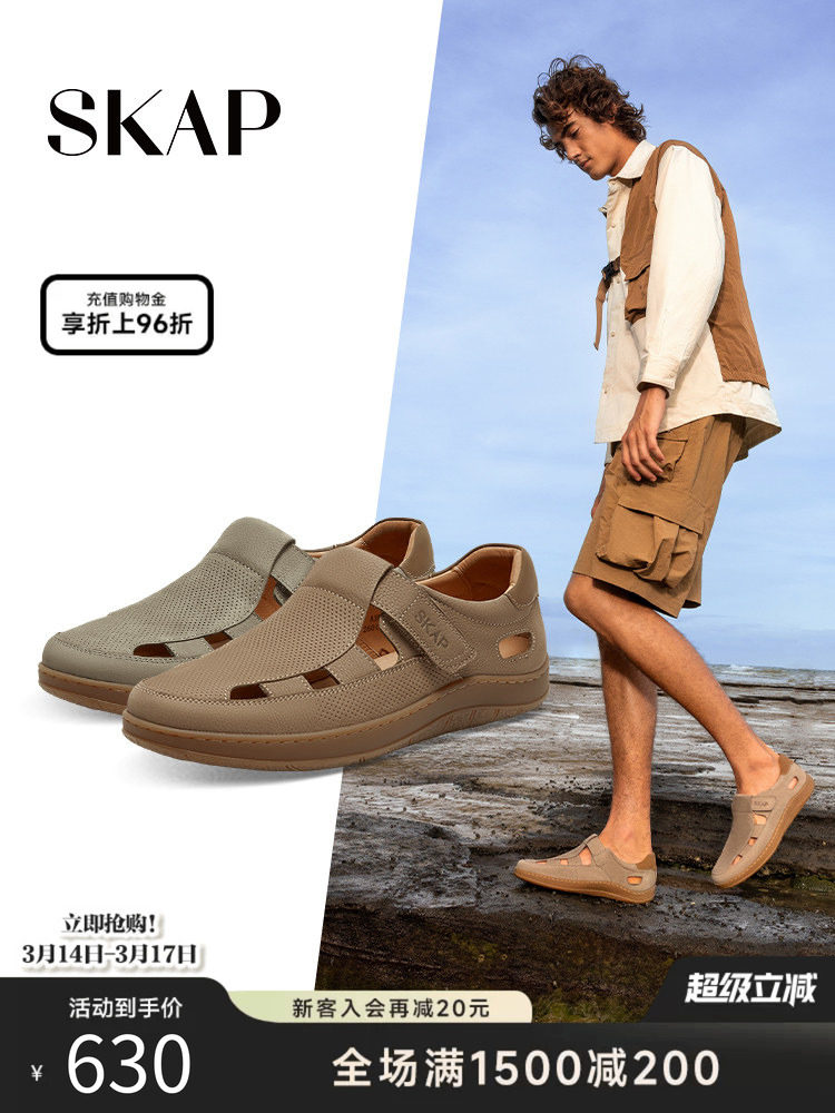Skap Saint Gaba 2026 Spring/Summer New Velcro Comfortable Flat Hollow Toe Men's Sandals A3K07Bk4