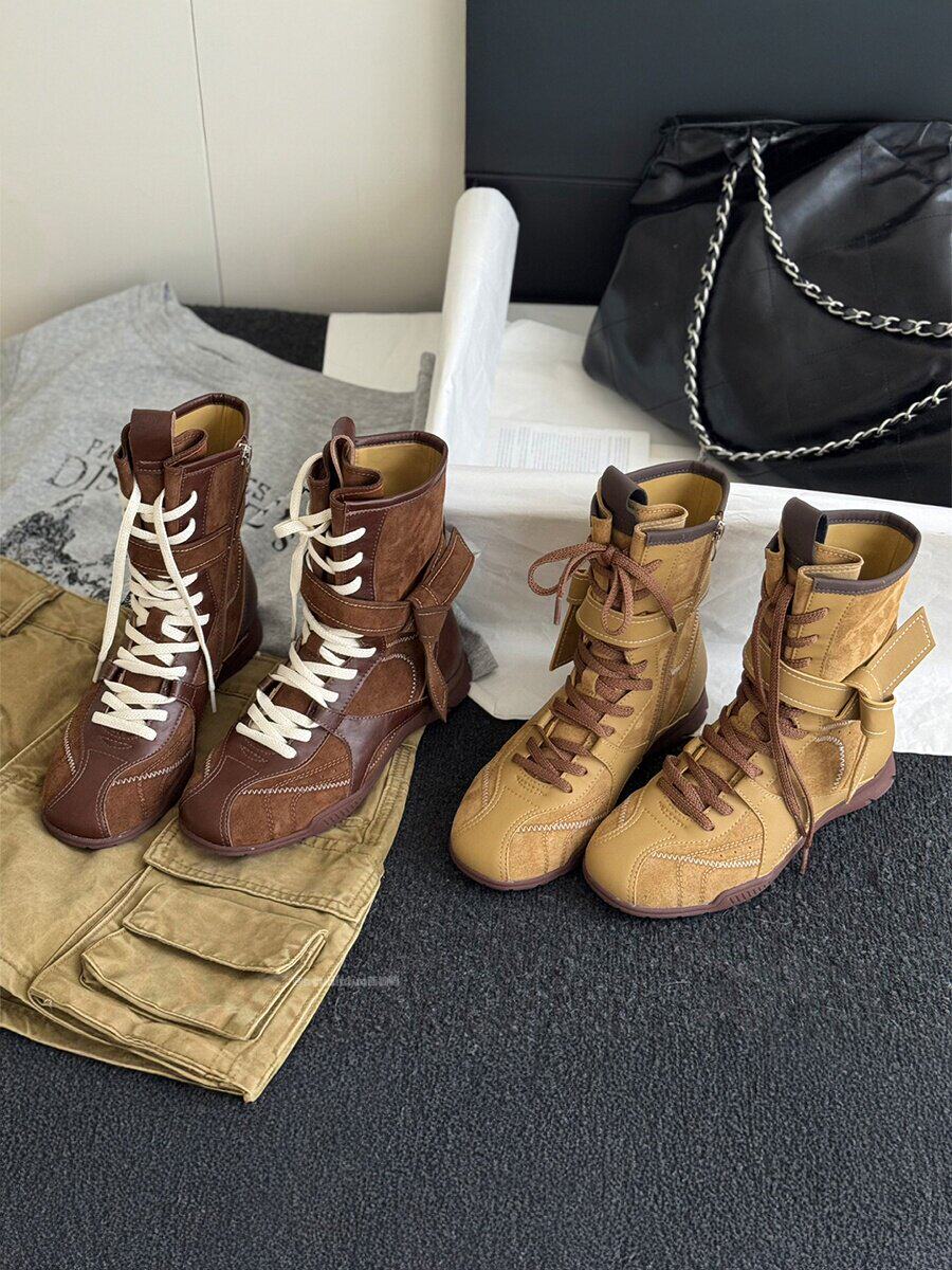 Hong Kong Retro Genuine Leather High-Top German Training Shoes for Women 2026 Spring and Autumn New Style with Hidden Height Increase, Comfortable and Versatile Casual Boxing Boots