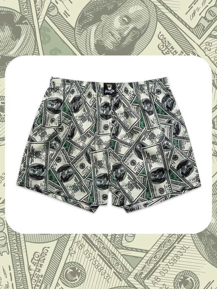 Men's Dollar Bill Pattern Cotton Loose Large Size Home Boxer Hip Hop Shorts