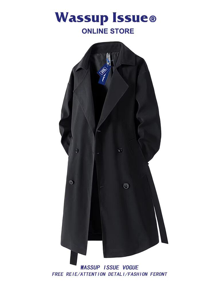 Wassup Issue American-Style Mid-Length Hooded Trendy Versatile Men's Autumn and Winter Faux Two-Piece Windbreaker Jacket for Men