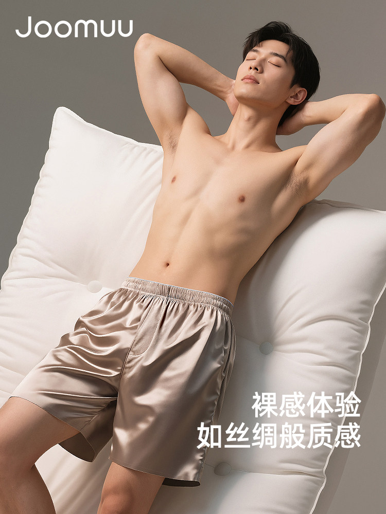 Joomuu High-End Men's Breathable Sleep Pants, Ice Silk Loose Underwear, Home Casual Wear, Outdoor Boxer Shorts