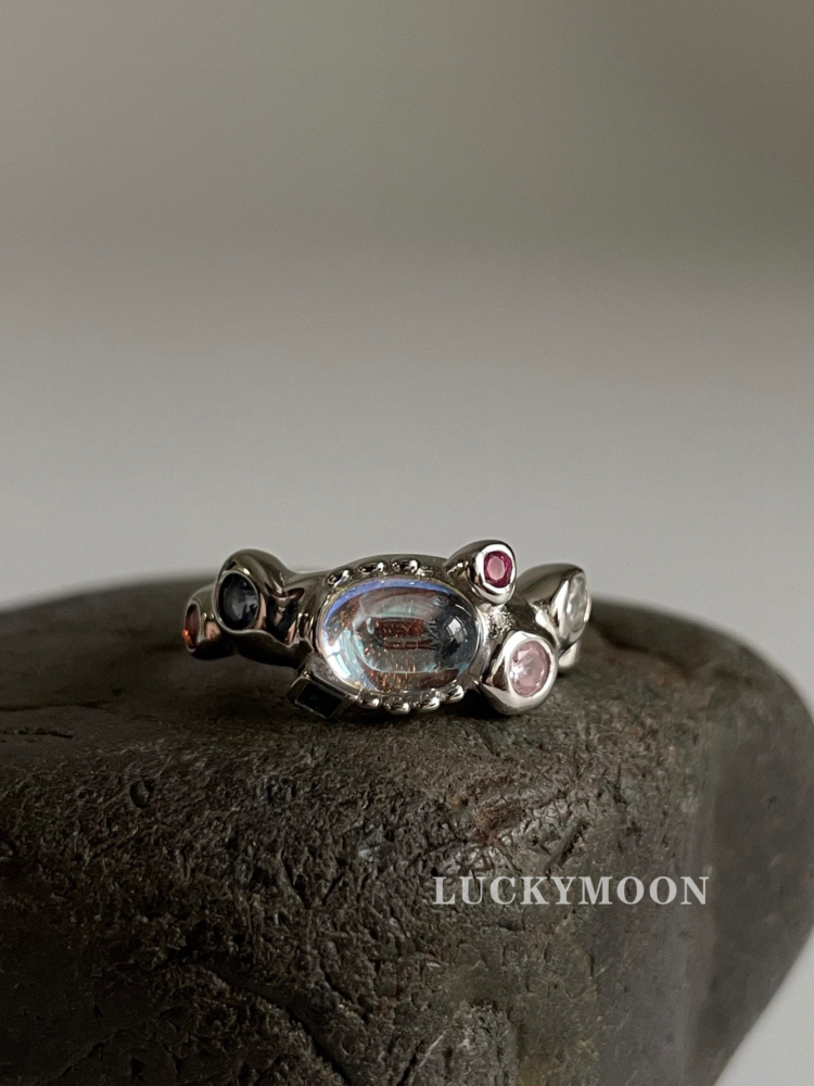 Luckymoon Chinese Valentine's Day Gift Colorful Zircon Moonstone Same Style Ring S925 All-Over Sterling Silver R005