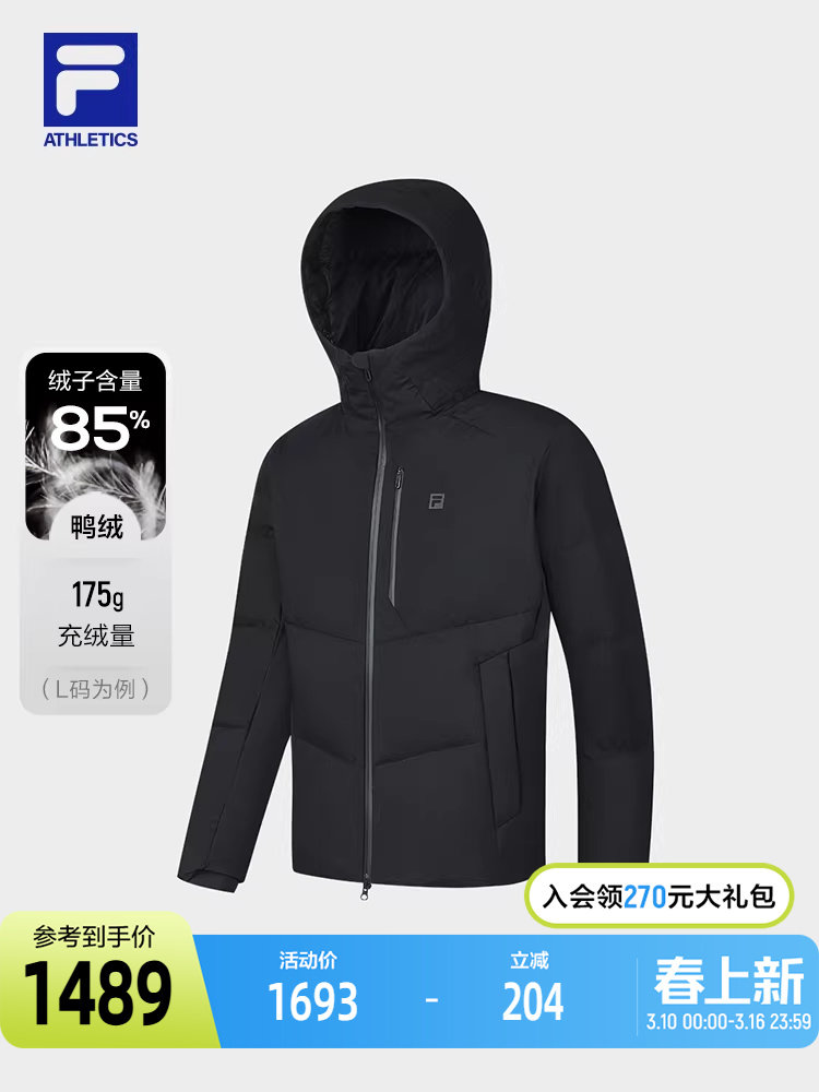 Fila Official Men's down Jacket 2024 Winter New Fitness Sports Basic Hooded Warm Jacket