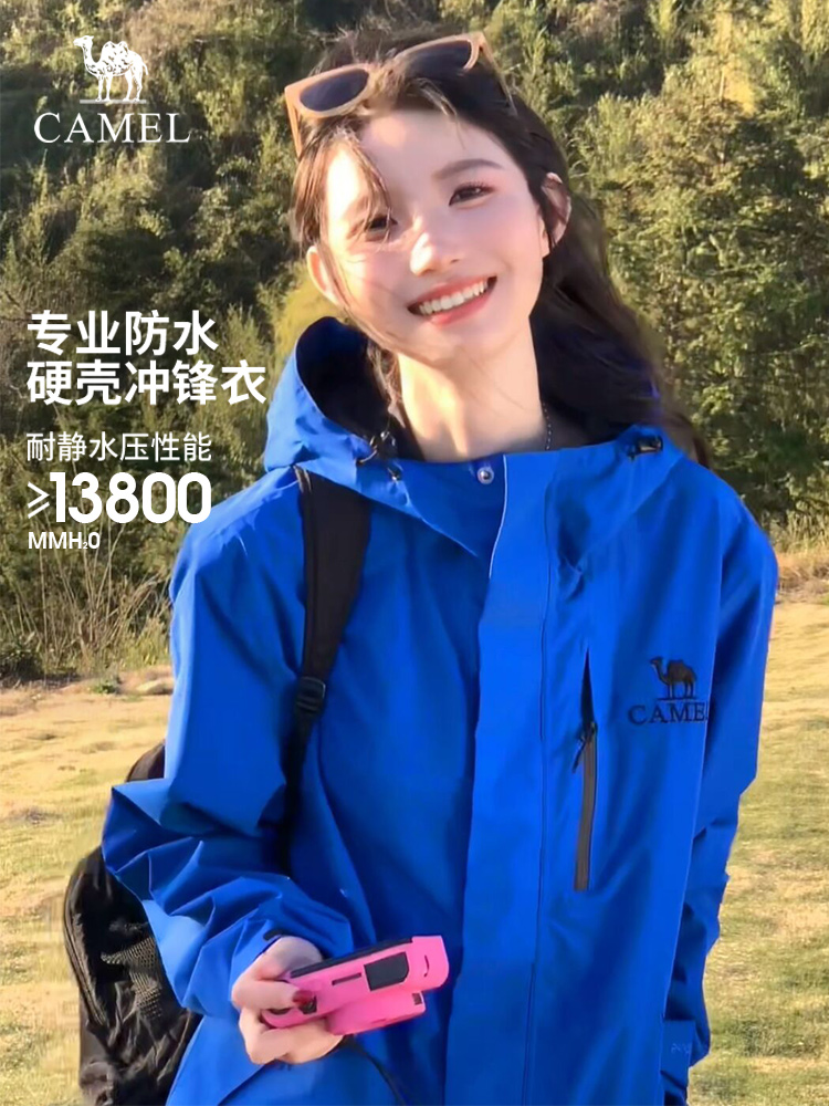 [Same Style as Wang Junkai] Camel Outdoor Hardshell Klein Blue Jacket for Women 2025 Single Layer Waterproof Jacket for Men