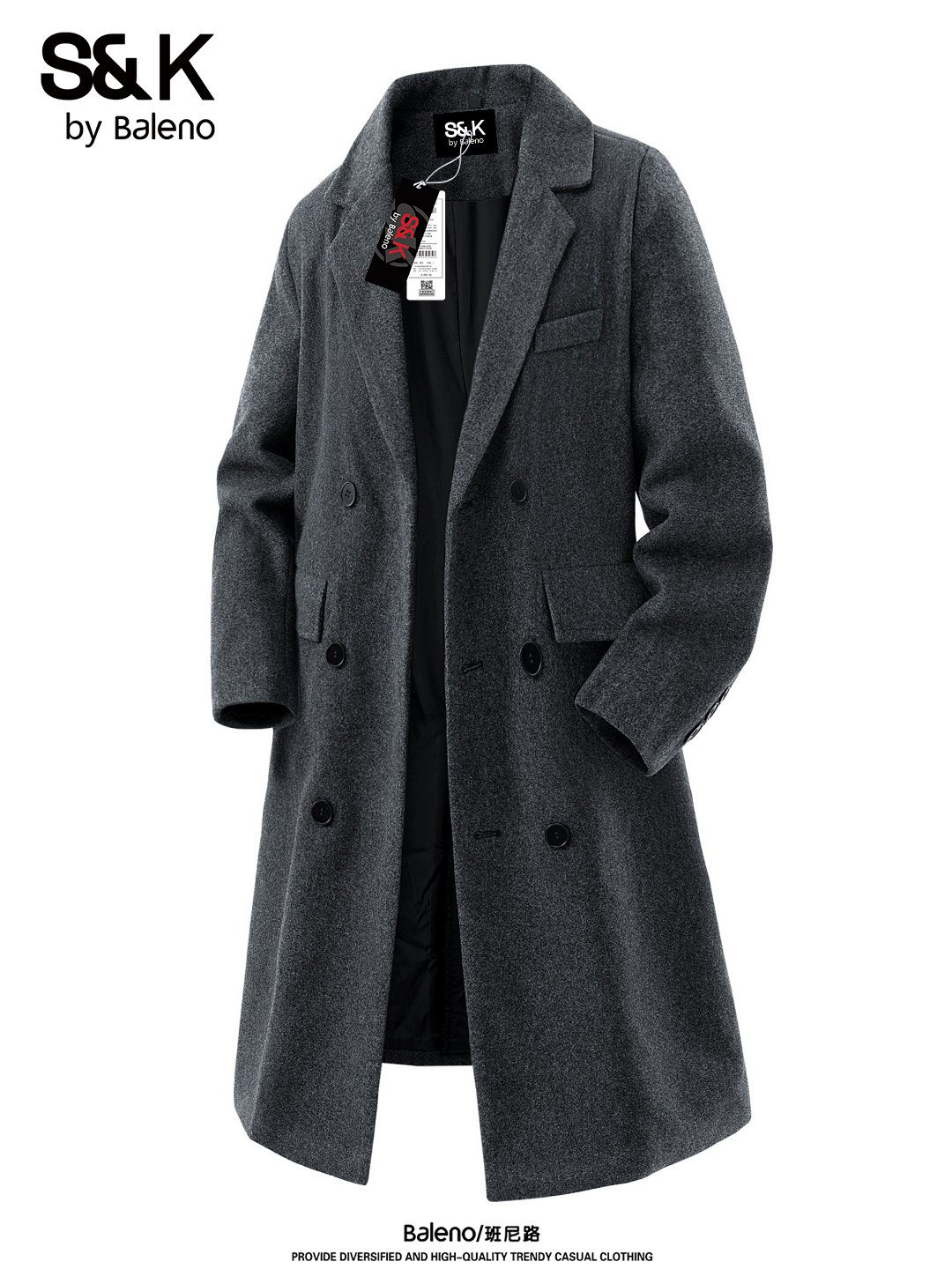 Baleno High-End Woolen Coat for Men, Spring and Winter Warm Lapel Loose Mid-Length Coat