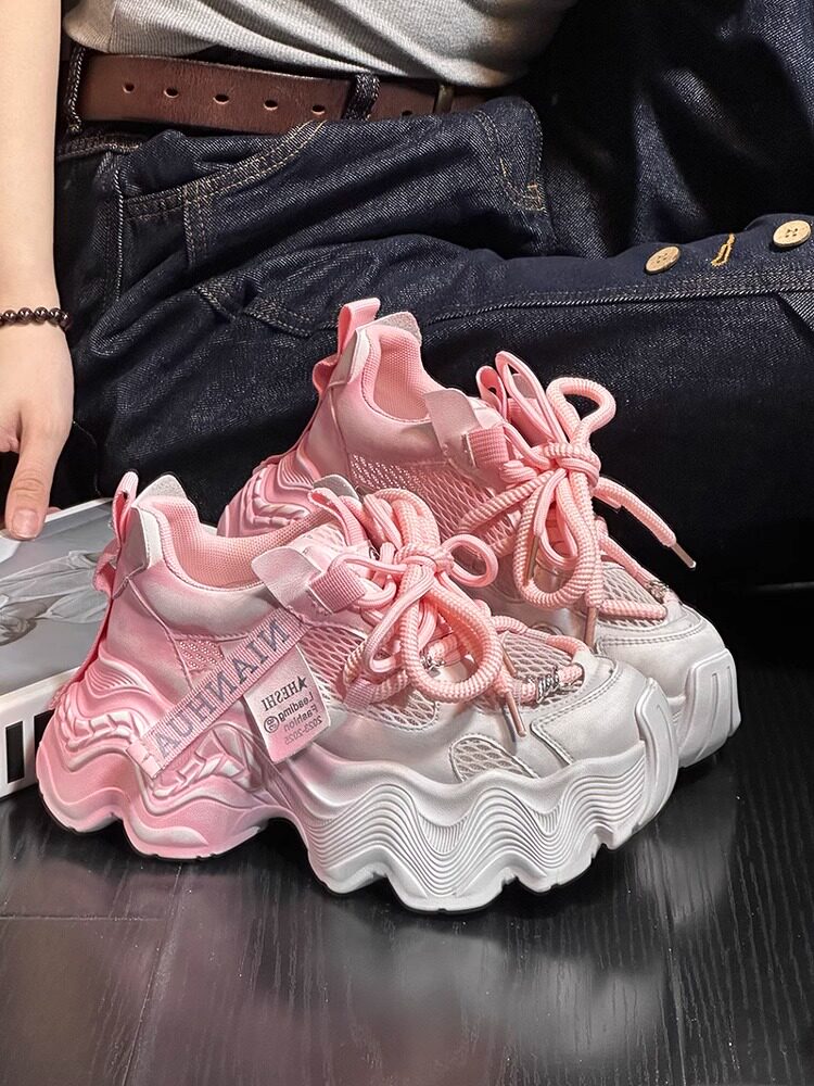 Hong Kong Gradient Color-Block Mesh Breathable Dad Shoes for Women 2026 Spring and Autumn New Wave Sole Height-Increasing Casual Sneakers
