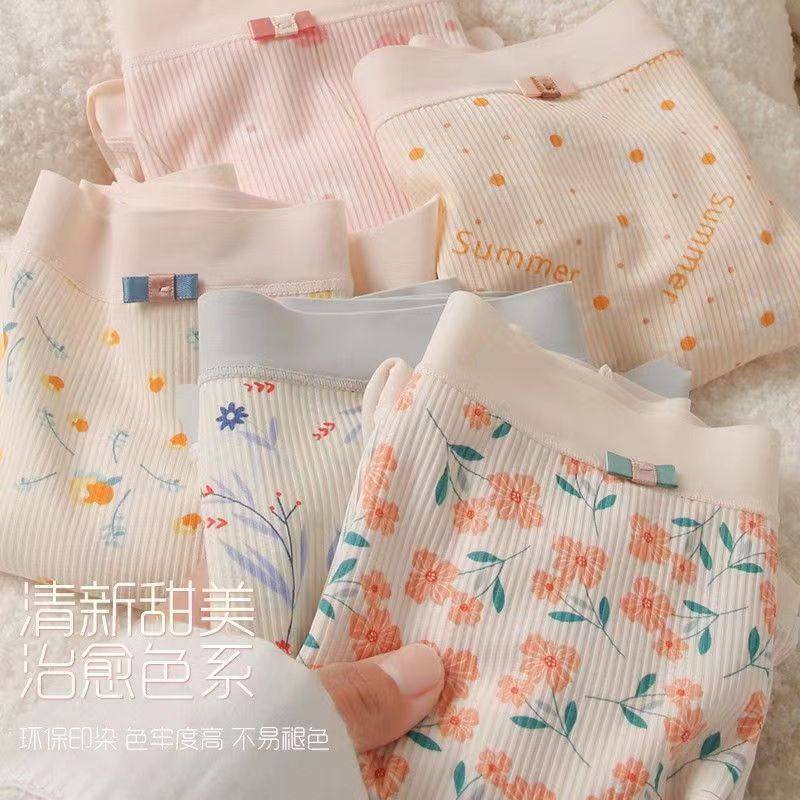 6 Pairs of Modal Underwear for Women, Silk Antibacterial Crotch, Mid-Waist, Seamless, Bowknot, Pastoral Style, Young Ladies' Briefs