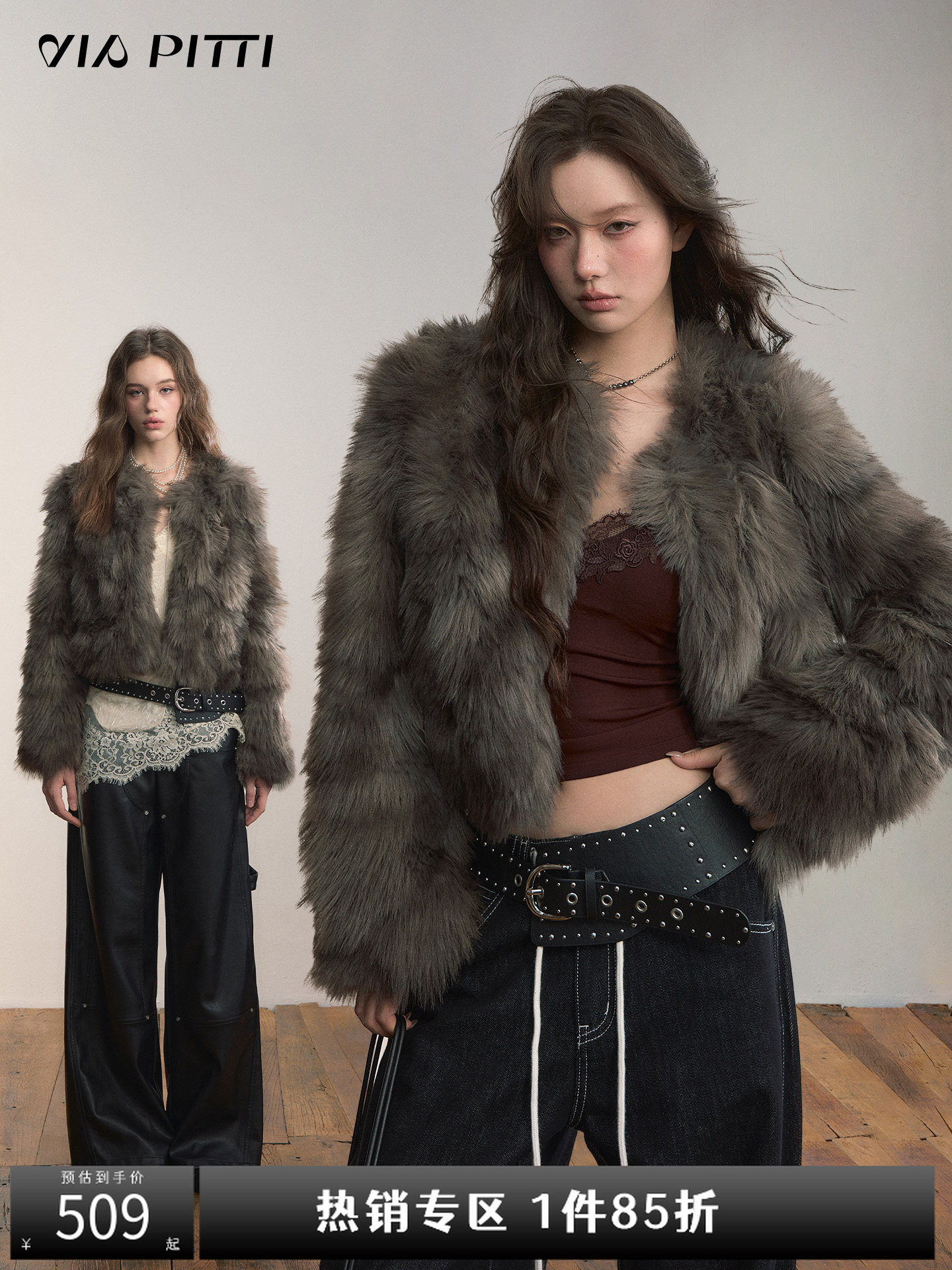 Viapitti Design-Focused, Heavy-Duty Short Pu Leather Jacket, Eco-Friendly Fur Women's Clothing, Autumn and Winter Street Style Coat Top