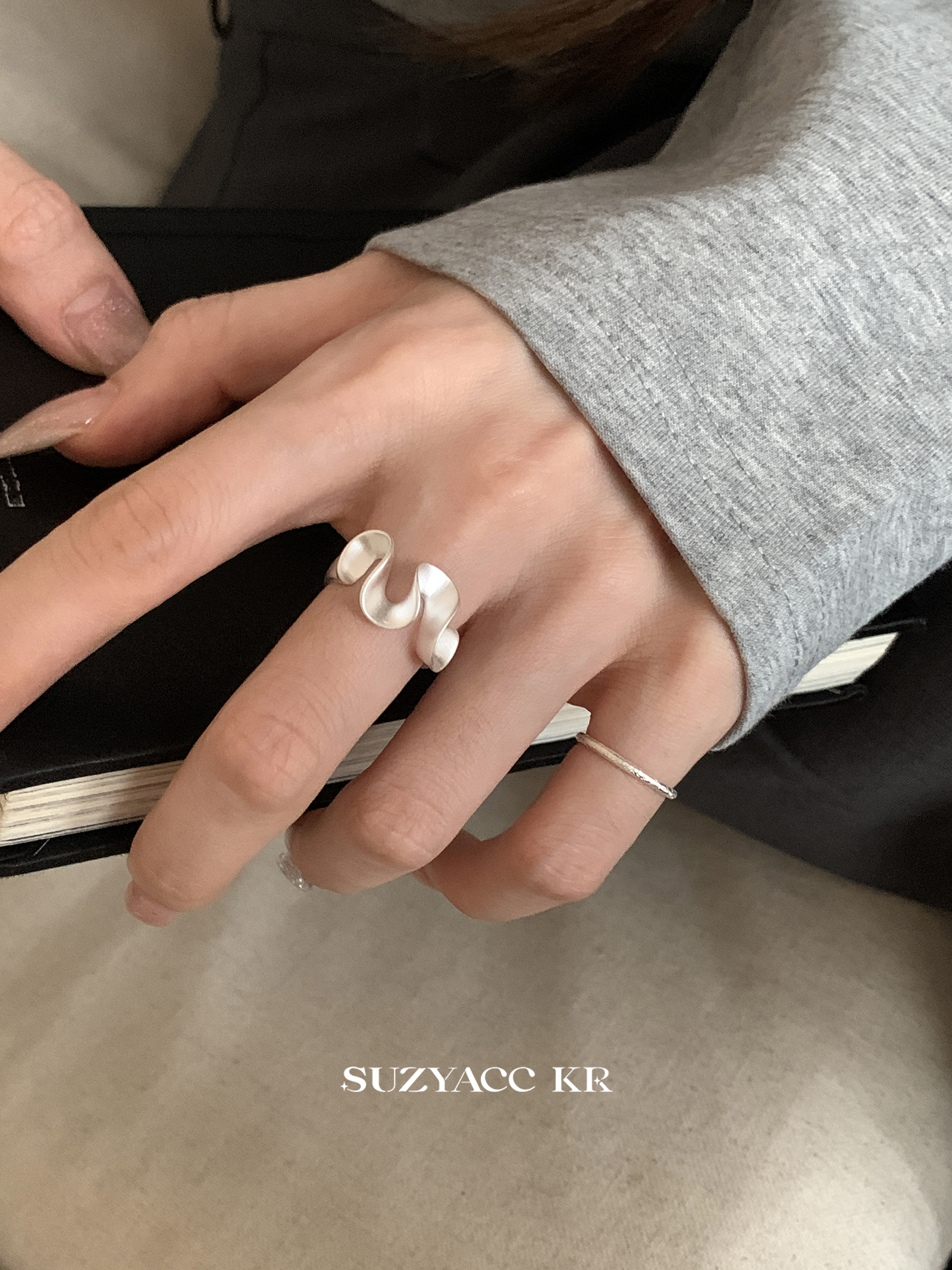 Suzyacc Kr Niche Design Matte Sterling Silver Skirt-Shaped Open Ring, Unique Minimalist Designer Style Index Finger Ring