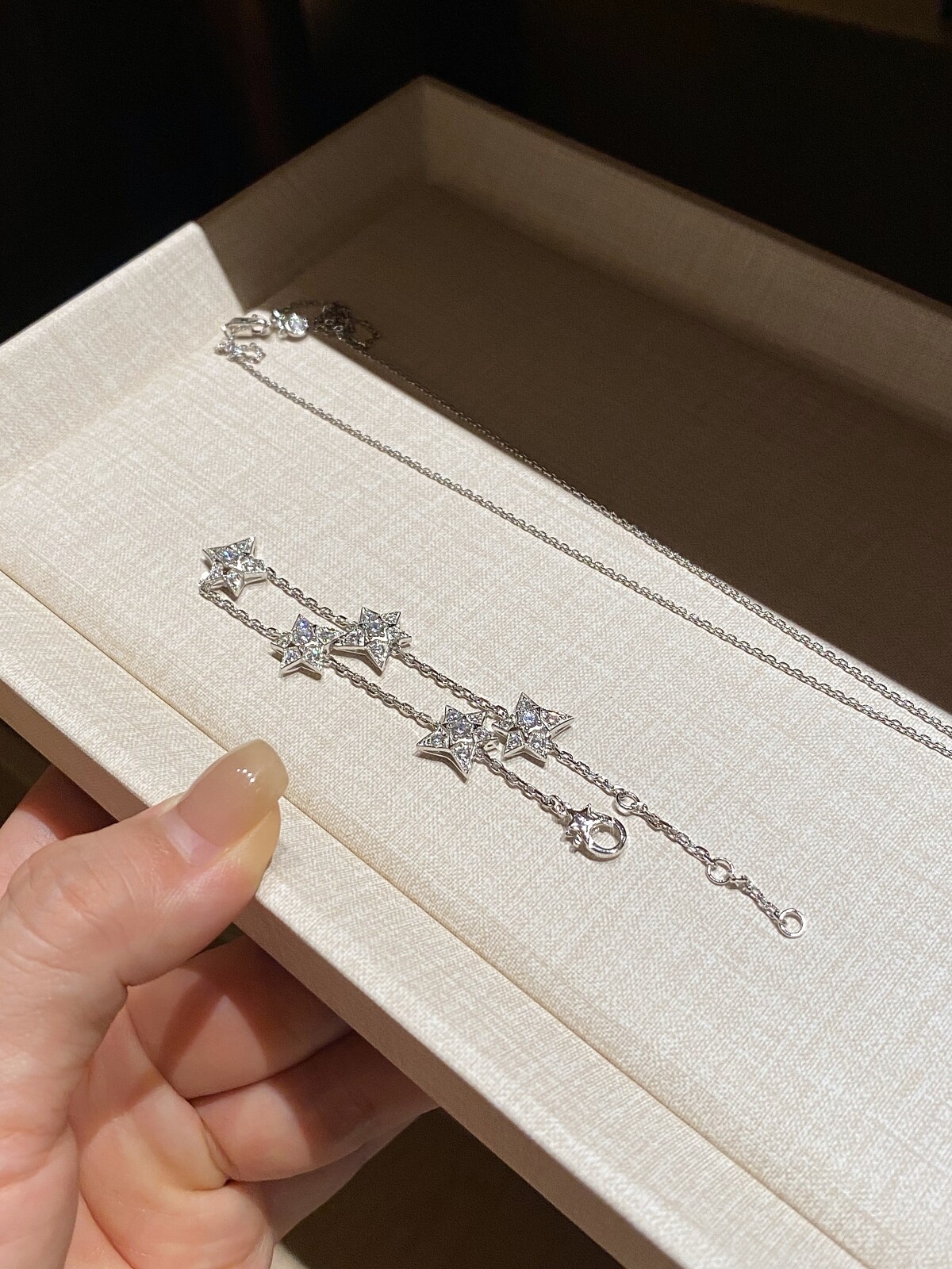 Tweed Style Asymmetrical Five-Star Bracelet Made of 925 Sterling Silver, Light Luxury with a High-End Feel, Zhang Tian'Ai's Same Style, Hand-Set with High-Carbon Diamonds