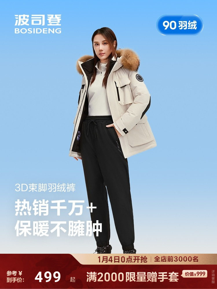 Bosideng 2025 New Winter Outerwear down Pants for Women, Warm Jogger Pants, Slim Fit, Versatile and Comfortable
