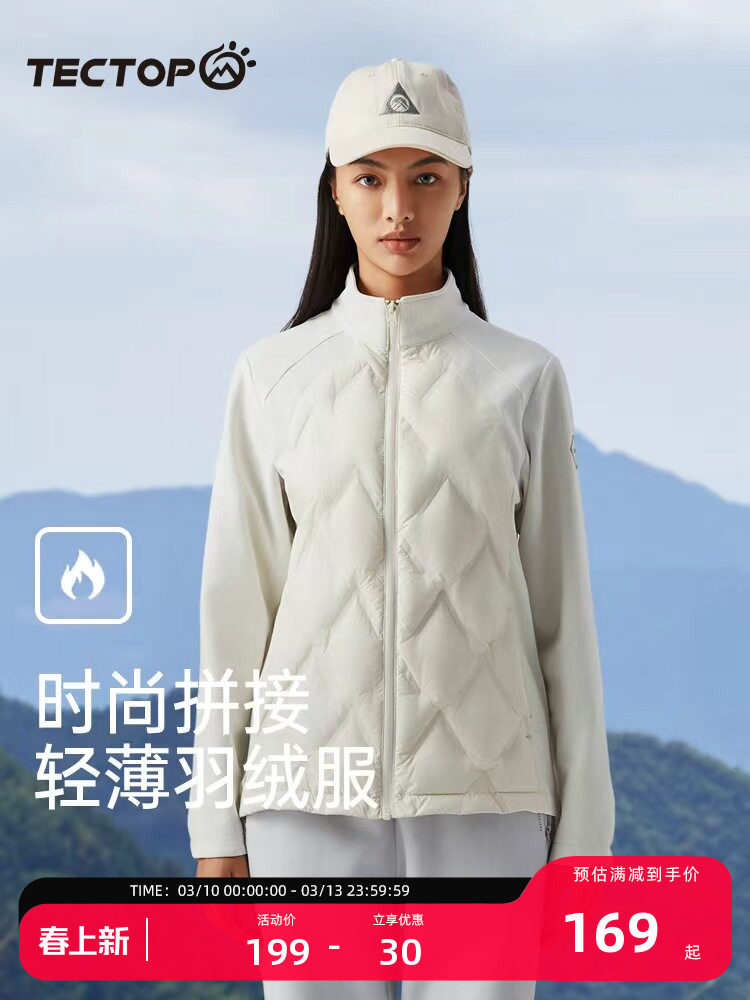 Tantuo Outdoor Duck down Lightweight down Jacket for Men and Women, Short Style with Patchwork Design, Anti-Duvet-Insertion, Waterproof, Stand Collar down Coat