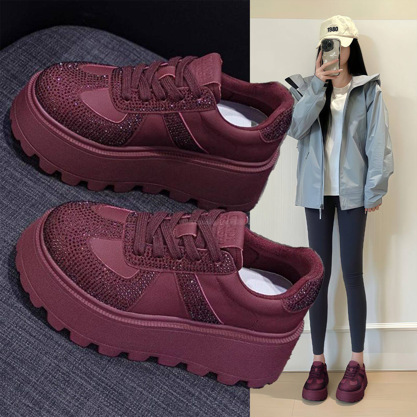 Hong Kong Retro Moral Training Cotton Shoes for Women 2025 Spring and Autumn New Style Rhinestone Thick-Soled Height-Increasing Red Sports Casual Sneakers