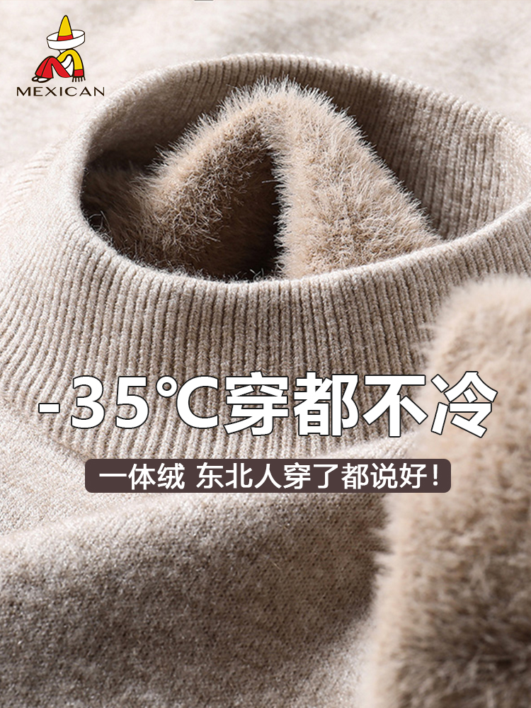 One-Piece Fleece Scarecrow 2025 Winter Men's Sweater with Fleece Lining, Thickened Half-High Collar Knitted Base Shirt Top for Men