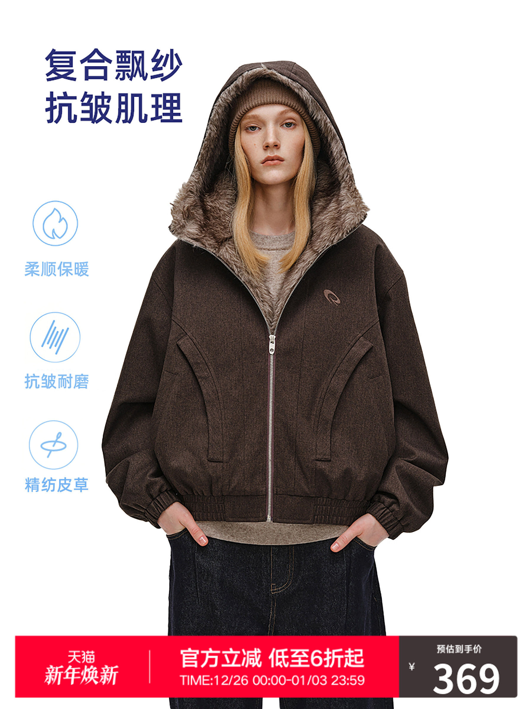 Argue Culture Fox Nick Niche Mountain Eagle Plush Hooded Sweatshirt Reversible Jacket Couple Cotton Coat