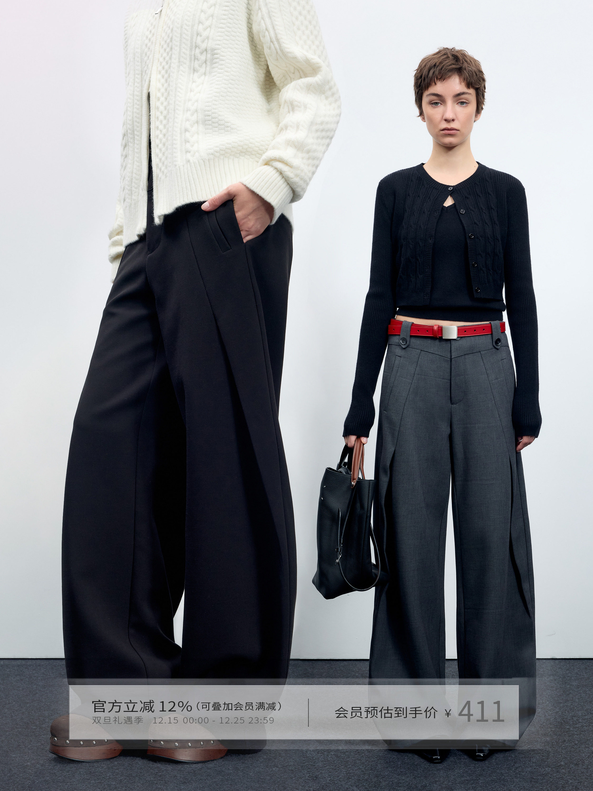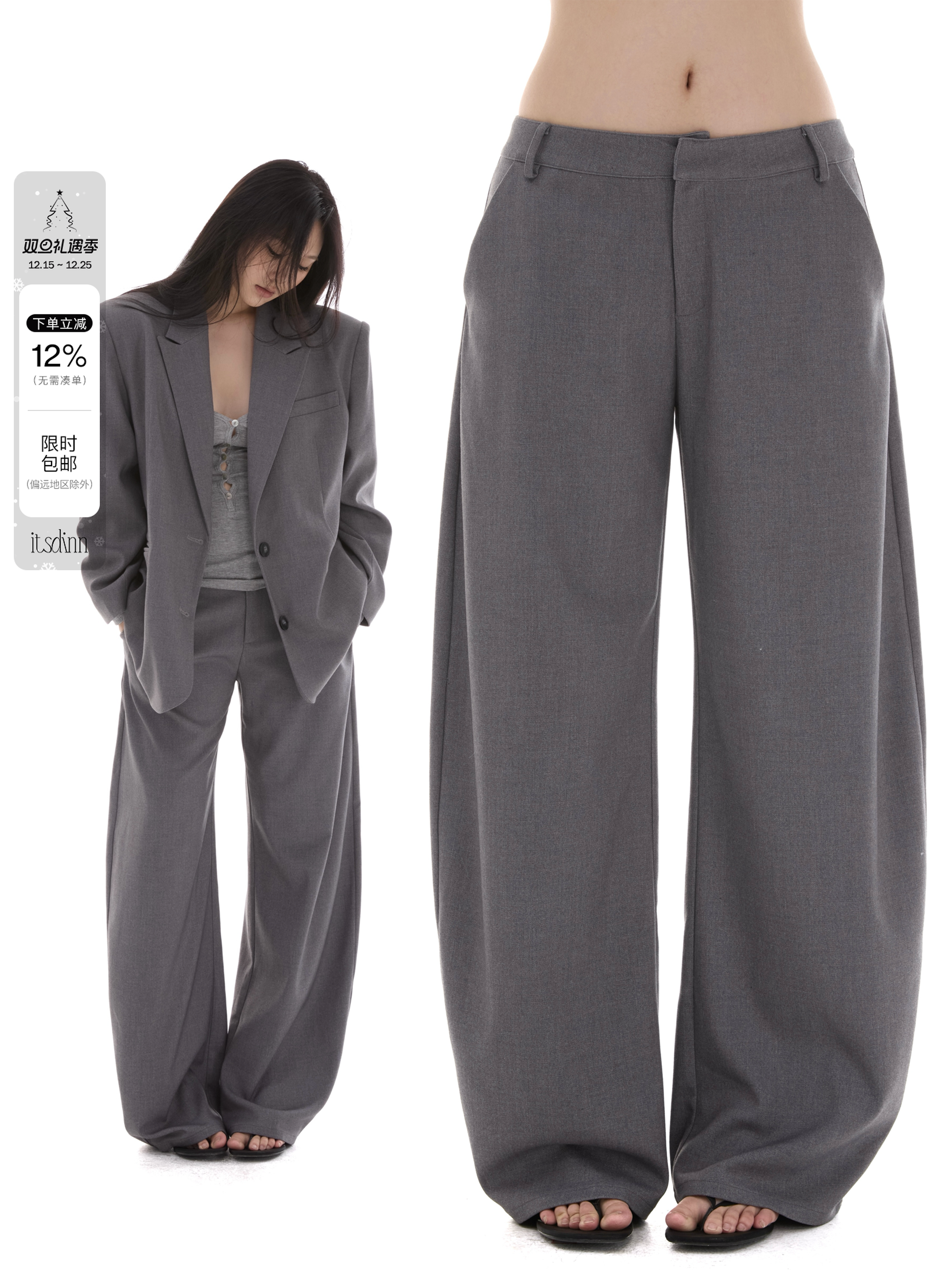 Escape from Chigang West Wool-Blend Silhouette Gray Micro-Curved Knife-Cut Suit Pants for Women, Autumn and Winter Wide-Leg Casual Pants