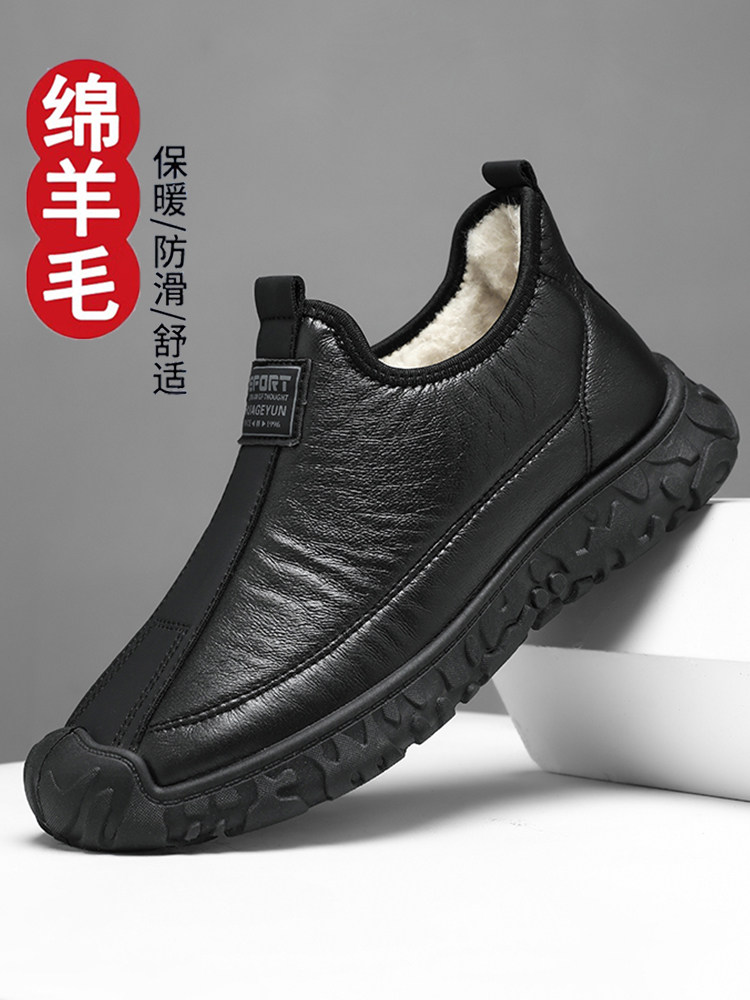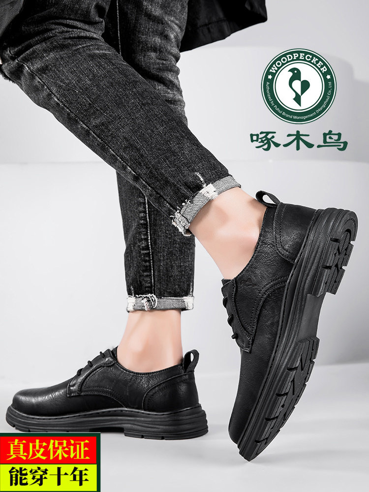 Woodpecker Brand Men's Shoes with Fleece Lining, 2025 Autumn and Winter Genuine Leather Casual Shoes, Men's British Style Leather Shoes, Versatile Work Shoes