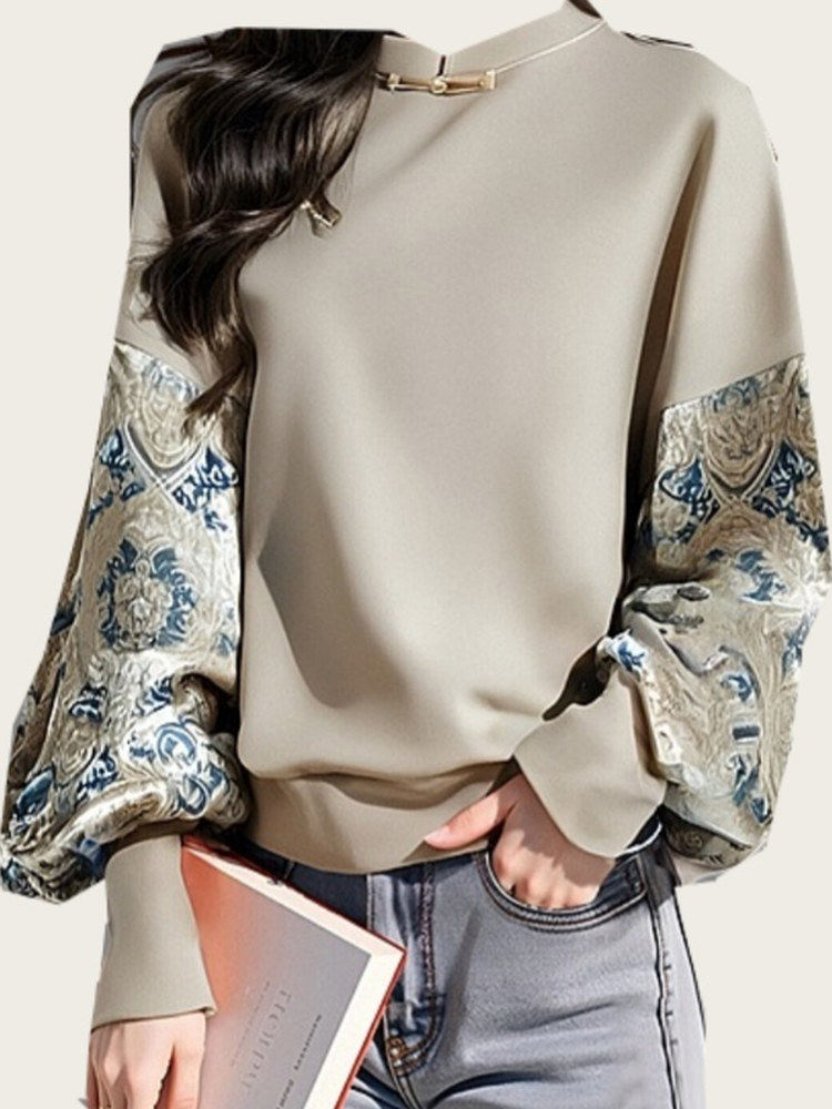 New Chinese-Style National Trend Color-Blocked Printed Loose Sweatshirt Women's Jacket 2025 Spring and Autumn New Retro Button-Up Patchwork Top