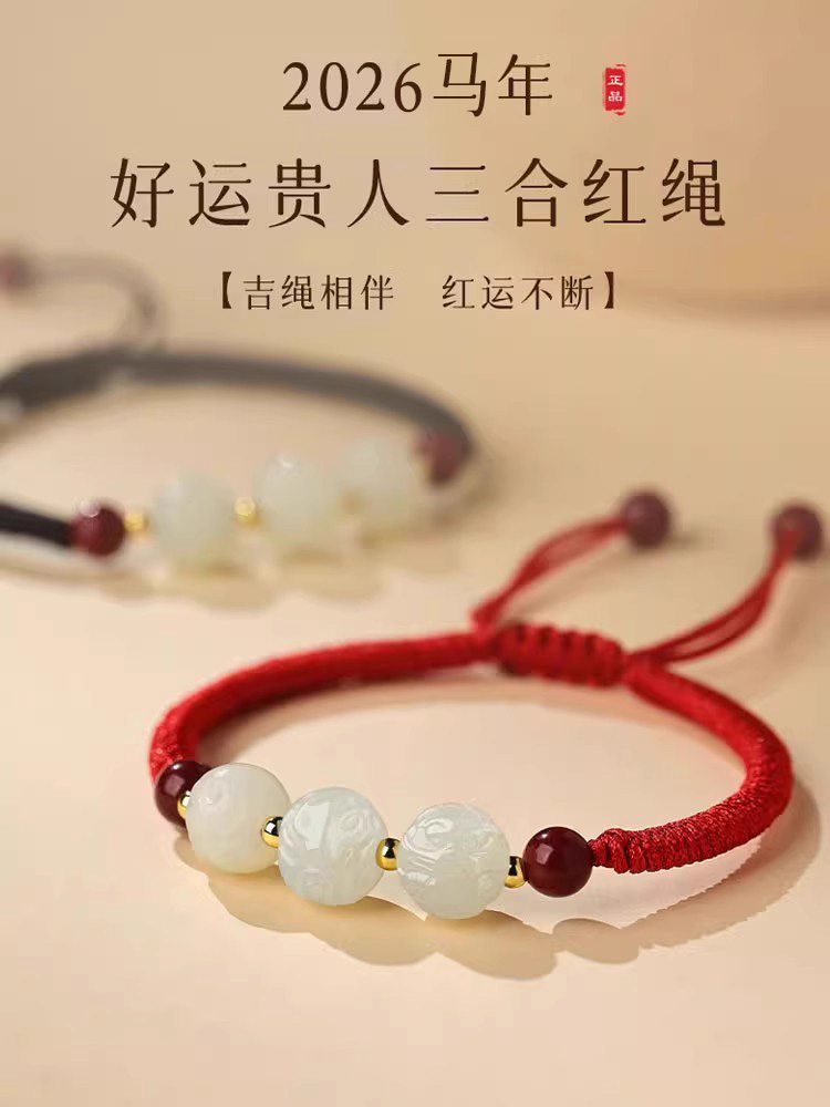 2026 Year of the Horse Zodiac Year Red String Bracelet for Men and Women, Three Harmonies Bracelet, Zodiac Sign Horse Amulet, Red String Gift