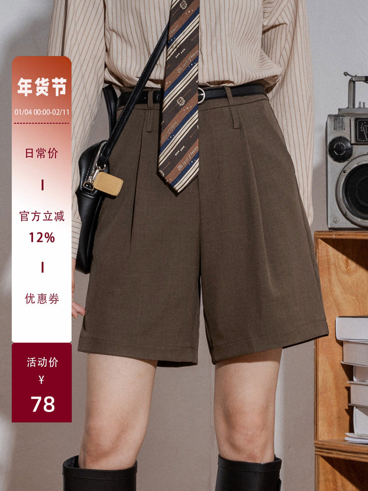 High-Waisted Straight-Leg Suit Shorts for Women, Vintage Casual Mid-Length Pants, Spring Simple and Elegant Loose Versatile Wide-Leg Shorts