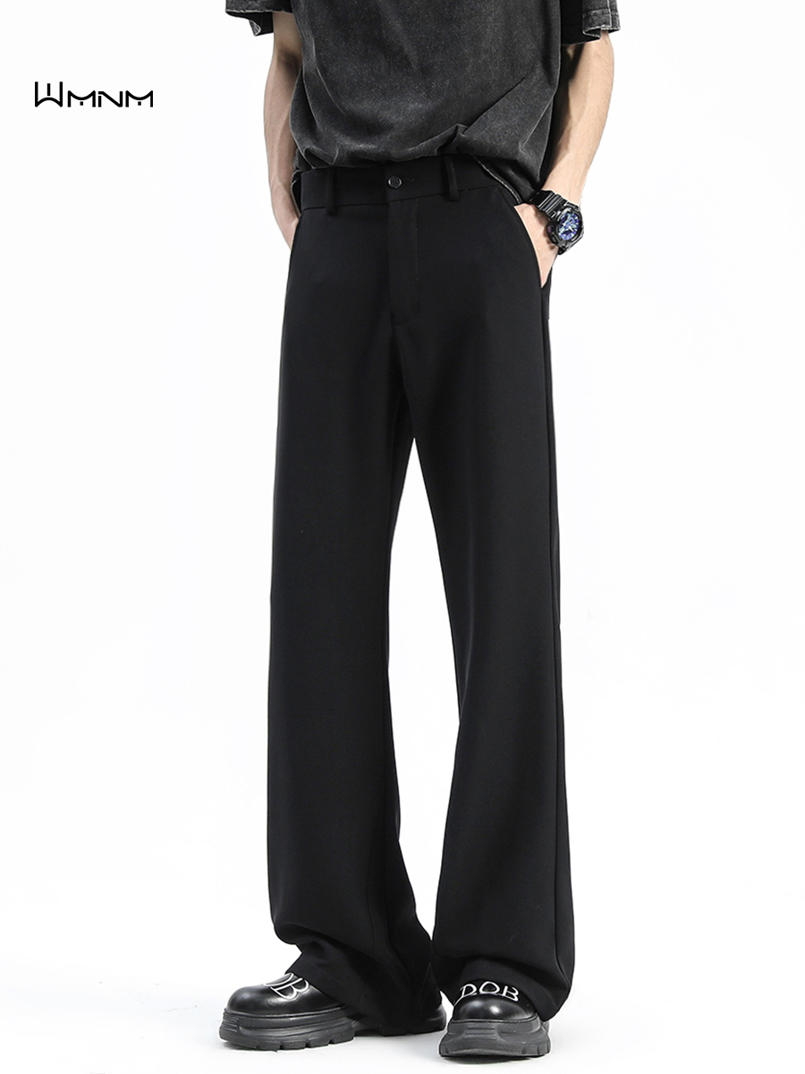 Black Drapey Men's Dress Pants for Autumn and Winter, Straight-Leg Cleanfit Flared Pants, High-End Casual Suit Pants for Men