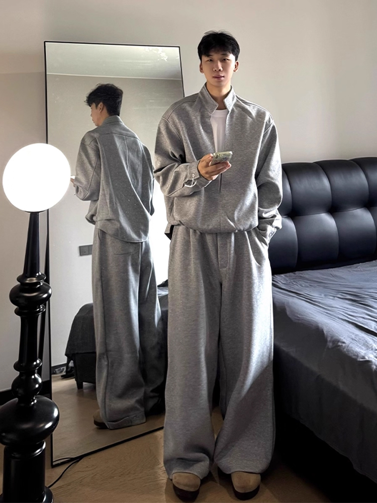 Escape from Chigang West 3D Embroidered Gray Suit Pants for Women, Drapey, Loose, Straight-Leg, Floor-Length, High-Waisted, Wide-Leg Casual Suit Pants
