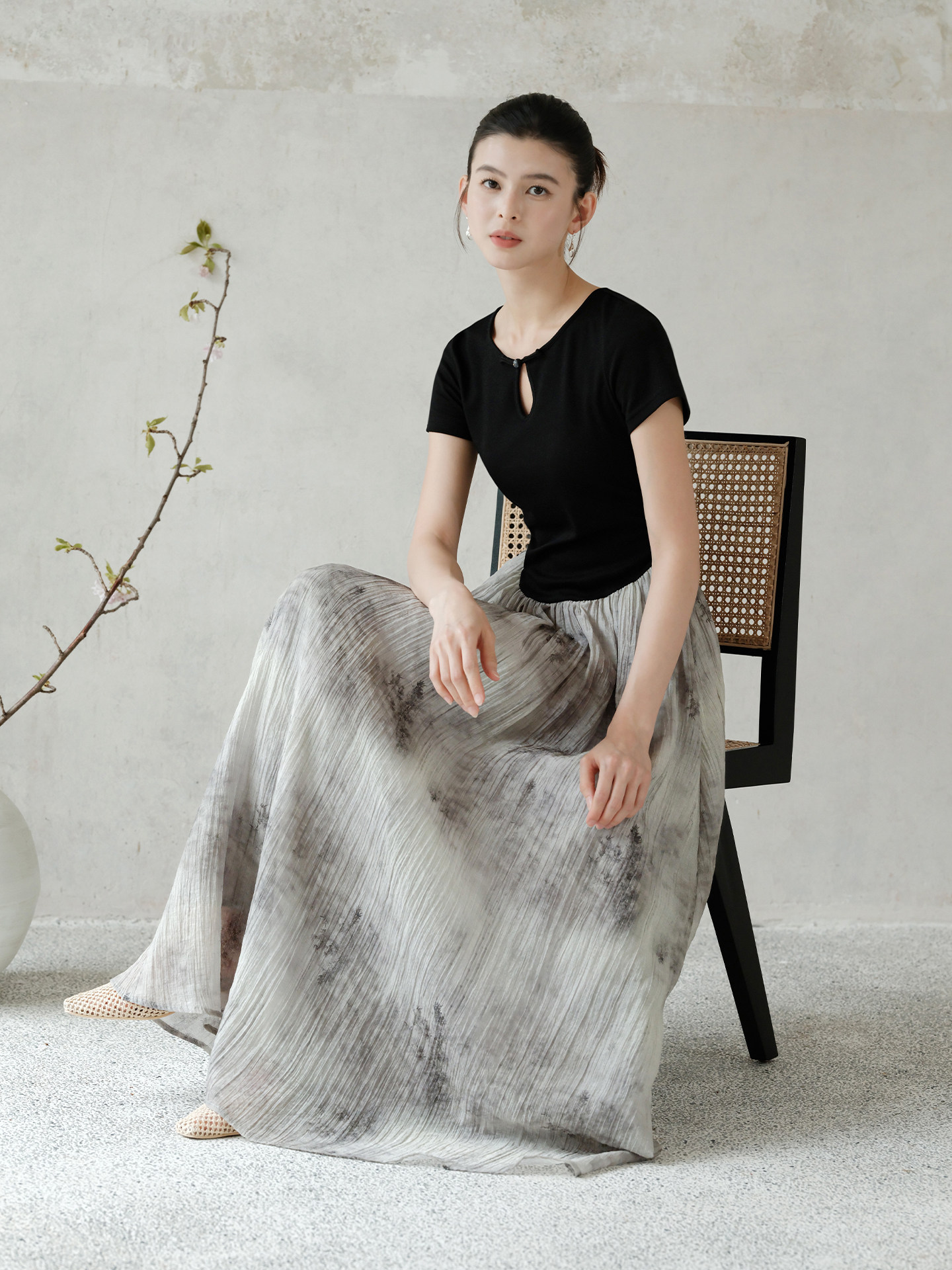 New Chinese-Style Dress for Women, Summer 2025, Traditional Chinese Style with Button Closure, Water Drop Collar, High-End Elegant Patchwork Long Dress
