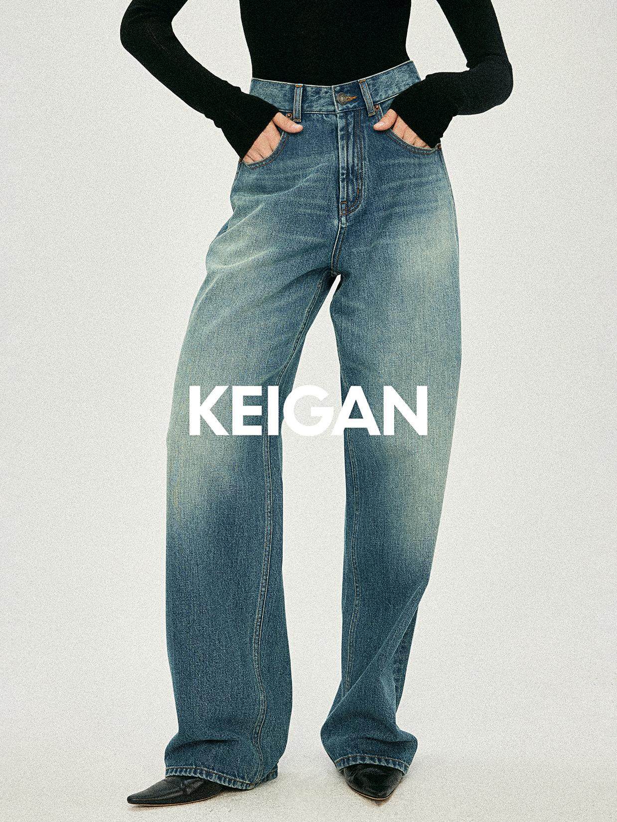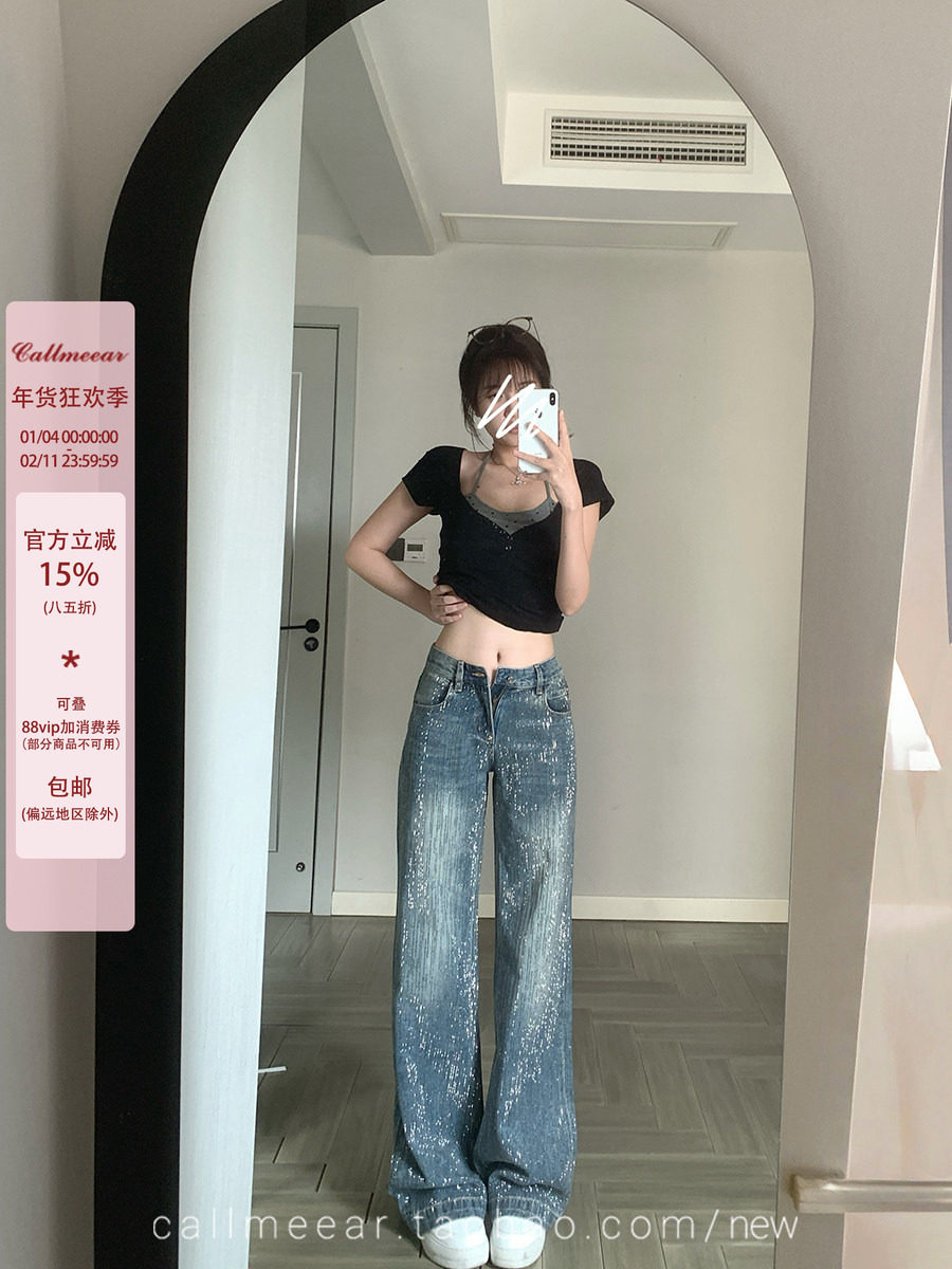 Callmeear//【Galaxy Diamond】6W Pieces of Mineral Gray Diamonds Heavy-Duty Denim Jeans for Women, Loose Straight-Leg Pants