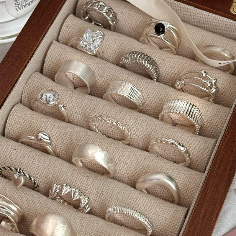 Niche Vintage Heavy-Duty S925 Sterling Silver Plain Ring, Non-Fading, No Need to Remove When Bathing, Adjustable Open Ring for the Index Finger
