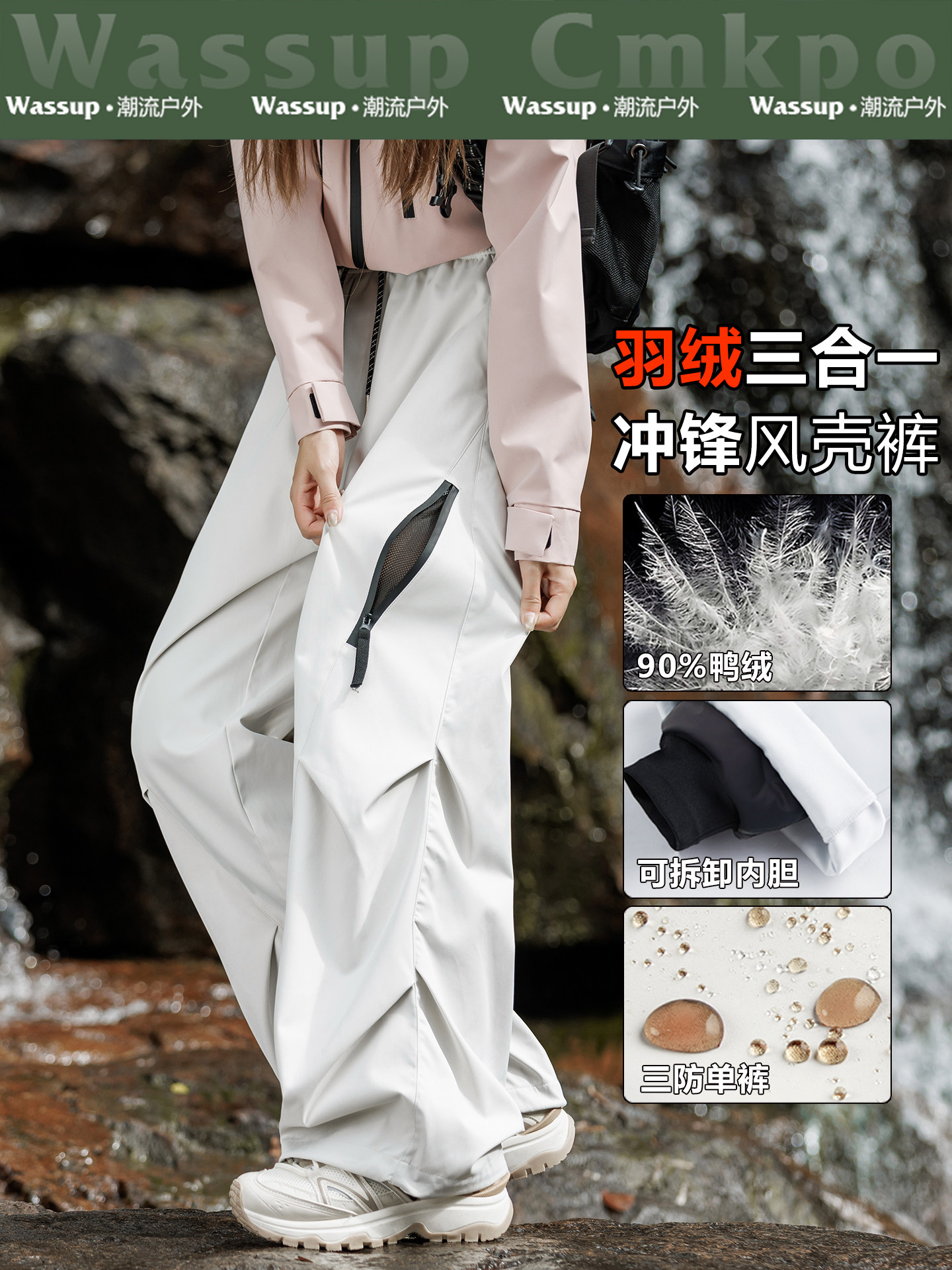 Wassup Cmkpo down Three-In-One Outdoor Pants for Women, New Winter Model, Harbin Snow Country Cold-Proof Ski Pants for Men