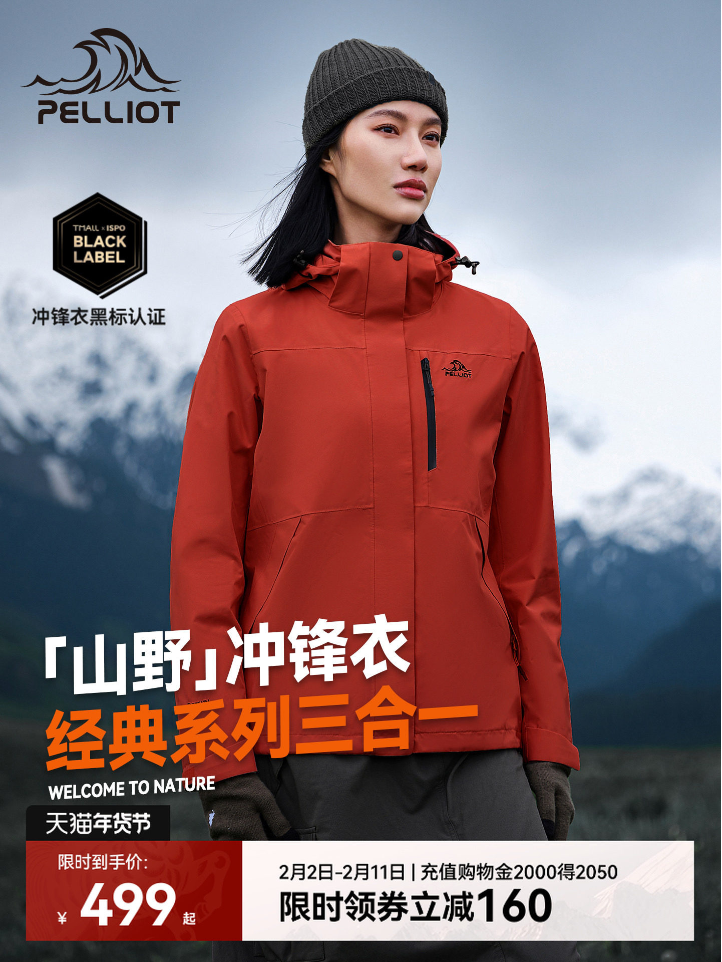 【Mountain and Wilderness】Pelliot Outdoor Lava Red down Jacket Women's 3-in-1 Windproof Coat down Jacket Men's