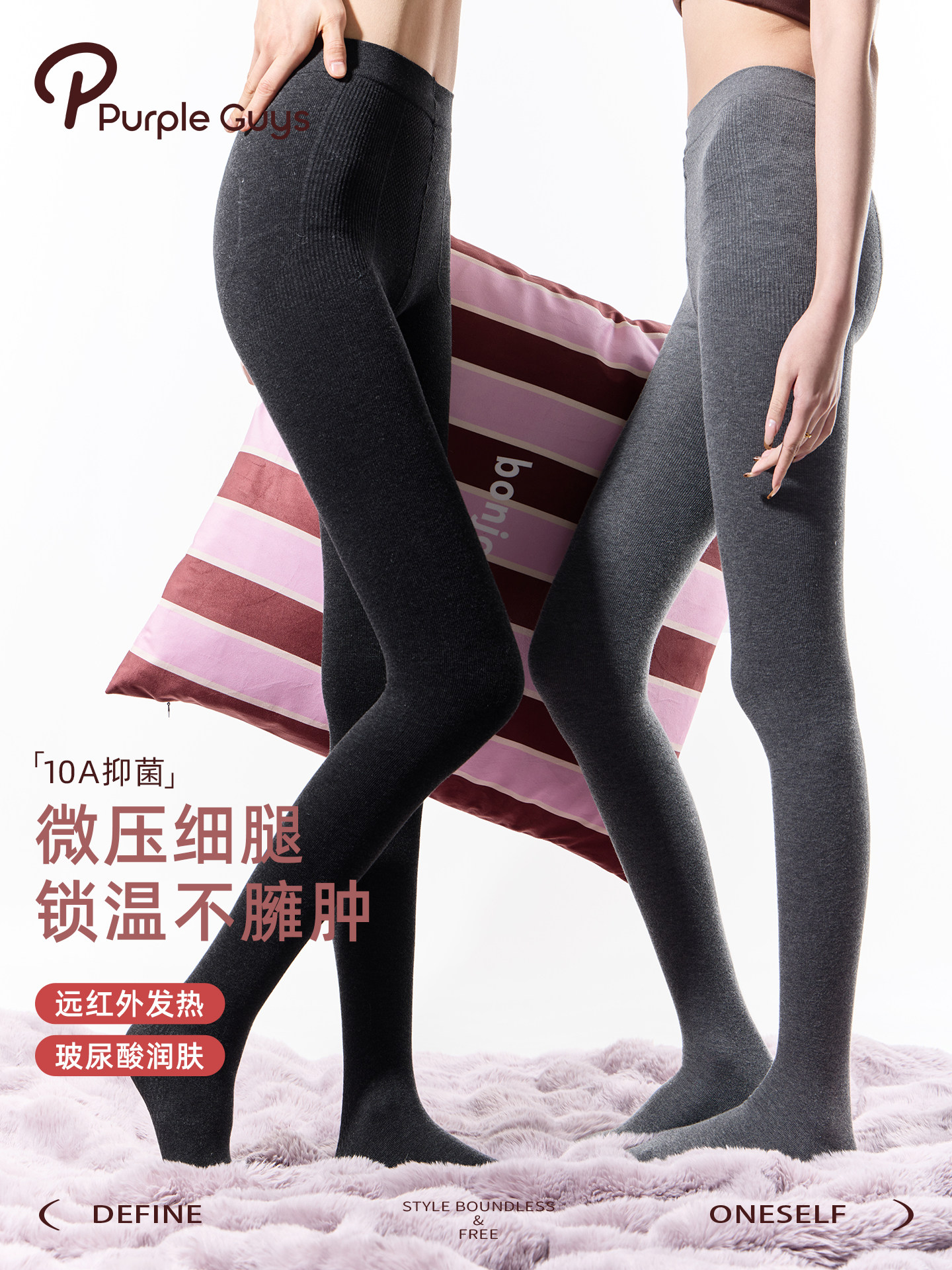 Purpleguys Gray Pantyhose for Women, Autumn and Winter, Fleece-Lined, Thickened, Black, Warm, Cashmere, Slight Compression, Slimming Leggings