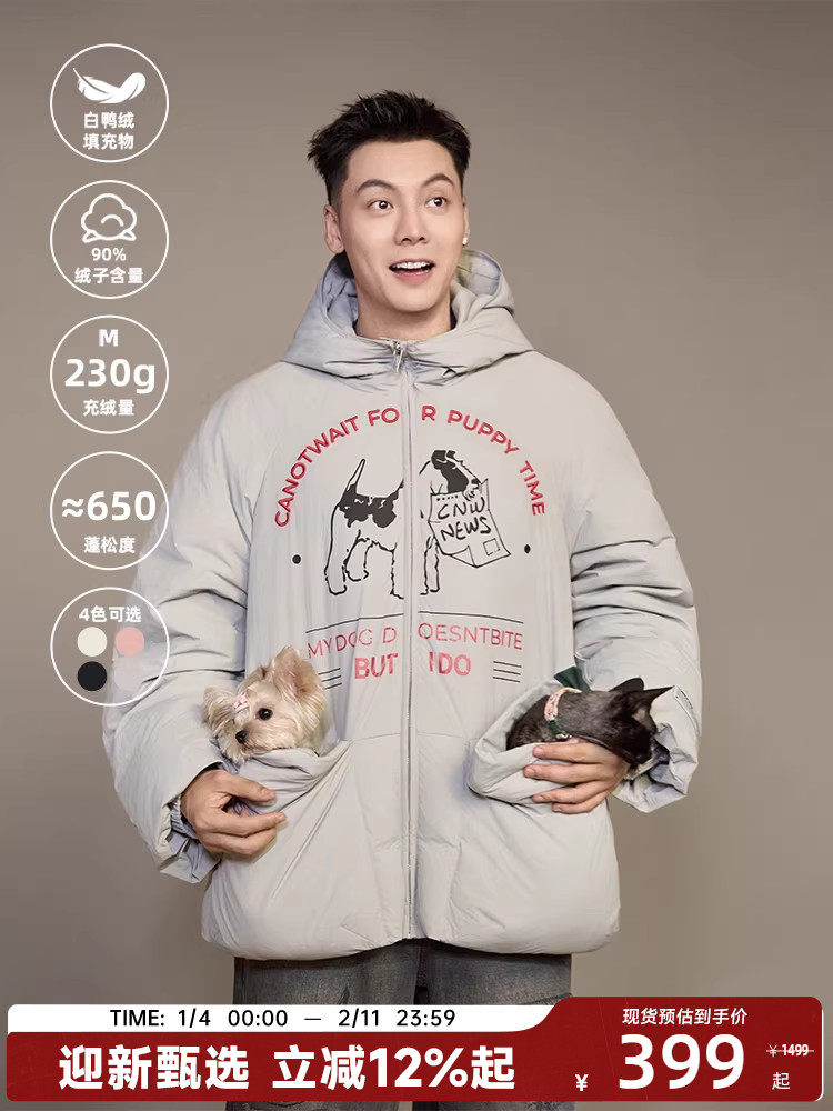 【New Product】William Chan Canotwait Animal Print Hooded down Jacket for Men and Women Winter Warm Trendy Coat