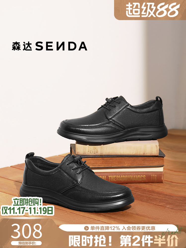 Senda Men's Casual Leather Shoes 2025 Soft Sheepskin Commuter Shoes Same Style as in the Mall Height-Increasing Genuine Leather Shoes 1Vd01Am5