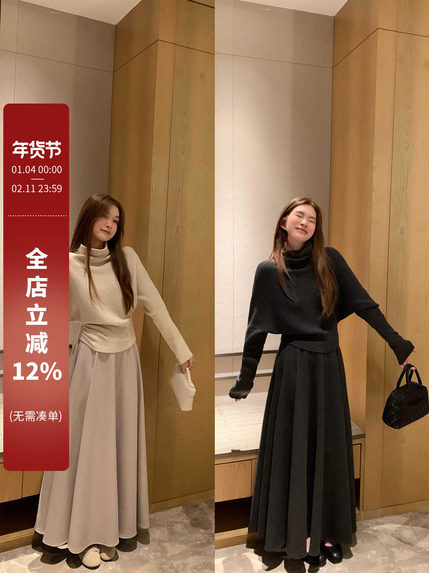 Heavy-Duty Goddess Style Woolen Skirt for Women, New High-Waisted A-Line Thickened Slimming Umbrella Skirt