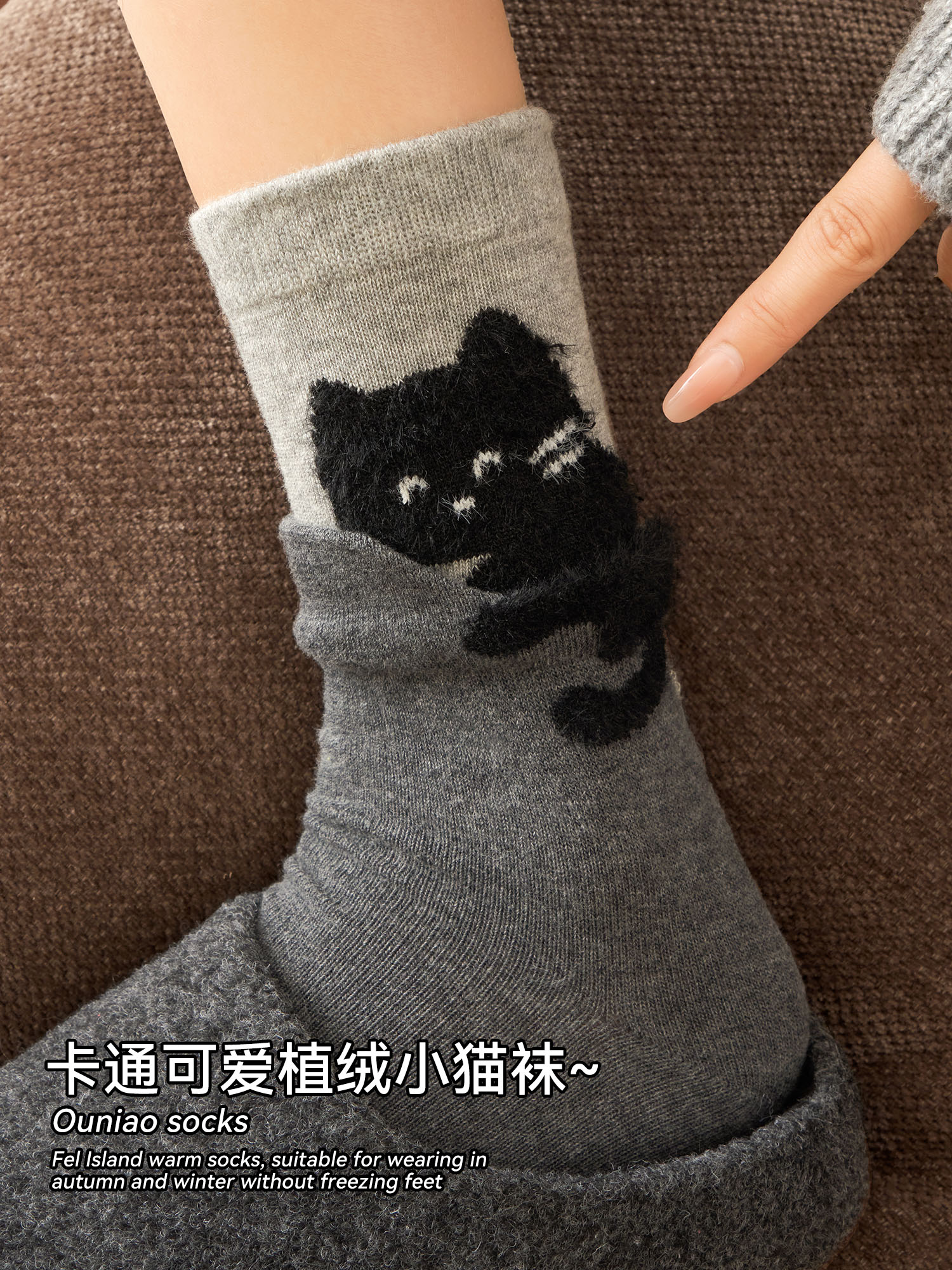 Polka Dot Wool Socks for Women, Autumn and Winter Gray Mid-Calf Socks, Thickened Warm Cashmere Cotton Socks, Retro Lace Long Socks
